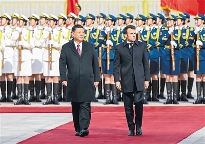 習(xí)近平歡迎馬克龍?jiān)俅卧L華。習(xí)近平指出,當(dāng)今世界正在經(jīng)歷深刻的歷史之變,中法作為聯(lián)合國(guó)安理會(huì)常任理事國(guó)和具有獨(dú)立自主傳統(tǒng)的大國(guó),作為世界多極化、國(guó)際關(guān)系民主化的堅(jiān)定推動(dòng)者,有能力、有責(zé)任超越分歧和束縛,堅(jiān)持穩(wěn)定、互惠、開(kāi)拓、向上的中法全面戰(zhàn)略伙伴關(guān)系大方向,踐行真正的多邊主義,維護(hù)世界和平、穩(wěn)定、繁榮。