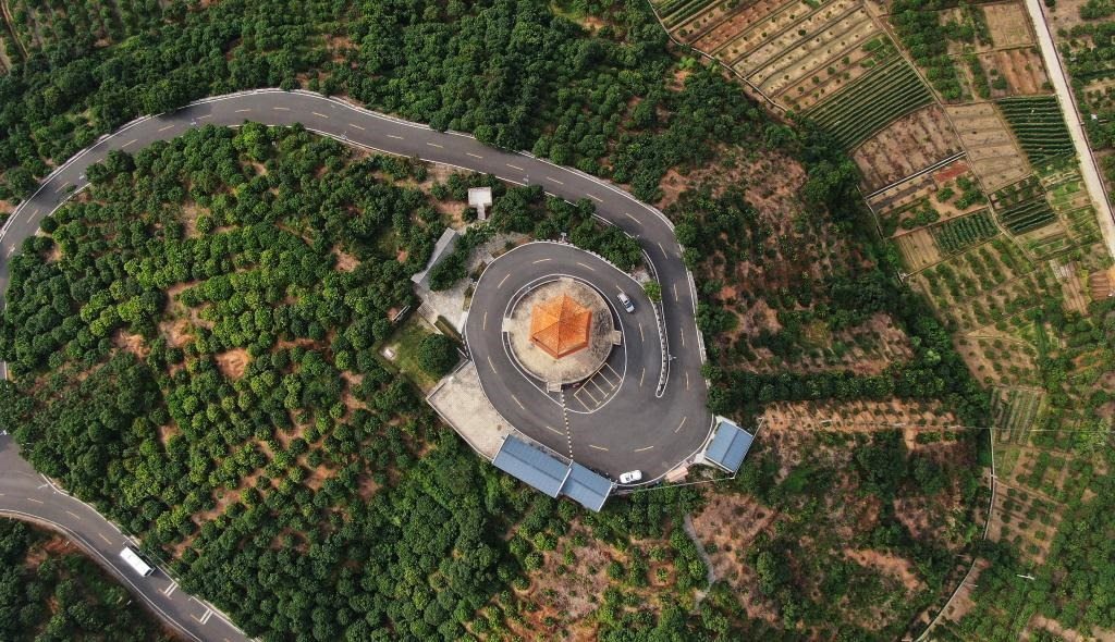 沿著平整山路,穿梭丘陵之間,滿目蔥翠,民居點(diǎn)綴其間。