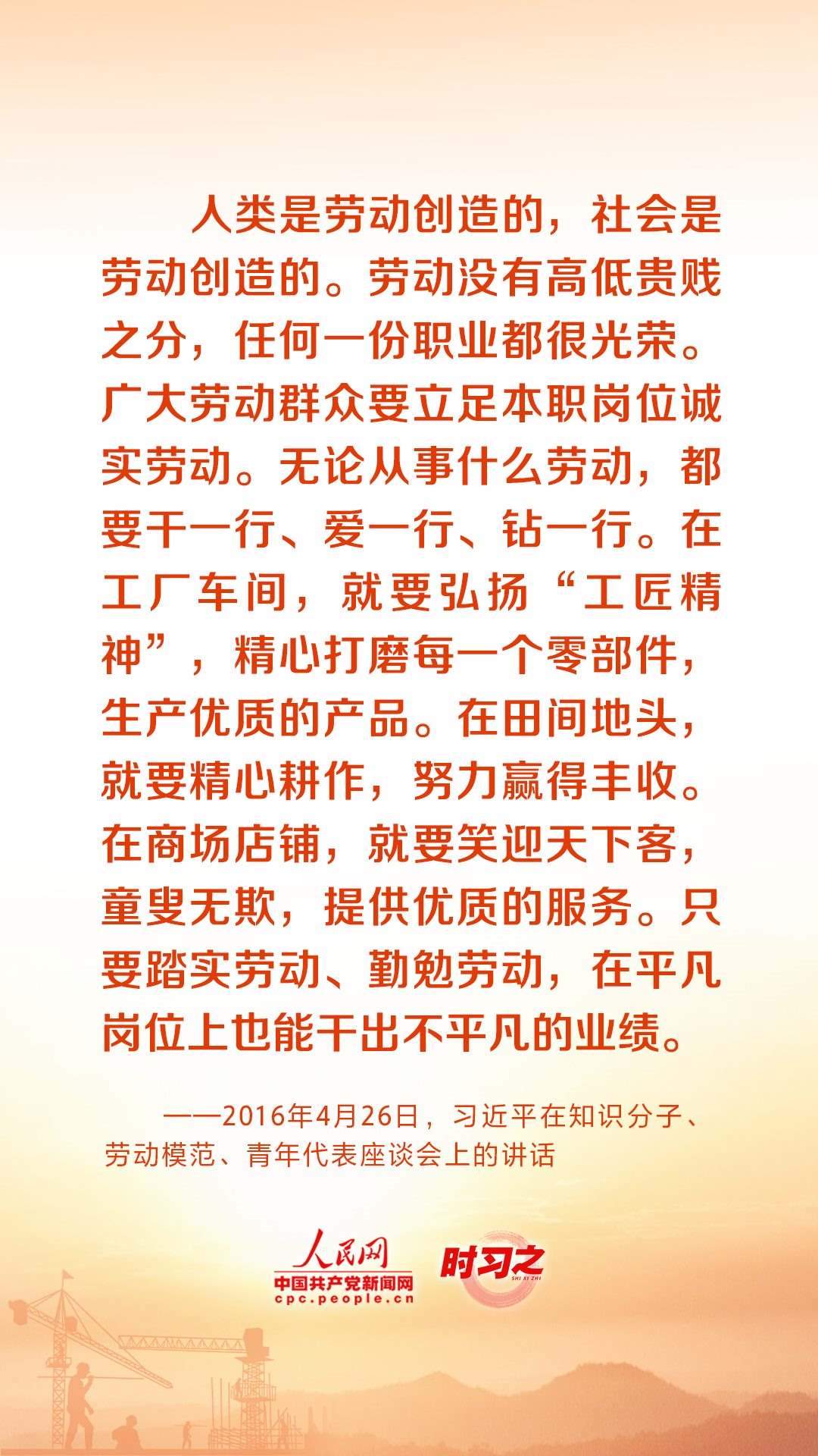 人民創(chuàng)造歷史,勞動開創(chuàng)未來。黨的十八大以來,習近平總書記始終心系全國廣大勞動者,激勵廣大勞動者在平凡崗位上續(xù)寫不平凡的故事。在“五一”國際勞動節(jié)到來之際,讓我們重溫總書記的諄諄話語,用辛勤勞動為經(jīng)濟社會發(fā)展貢獻力量。