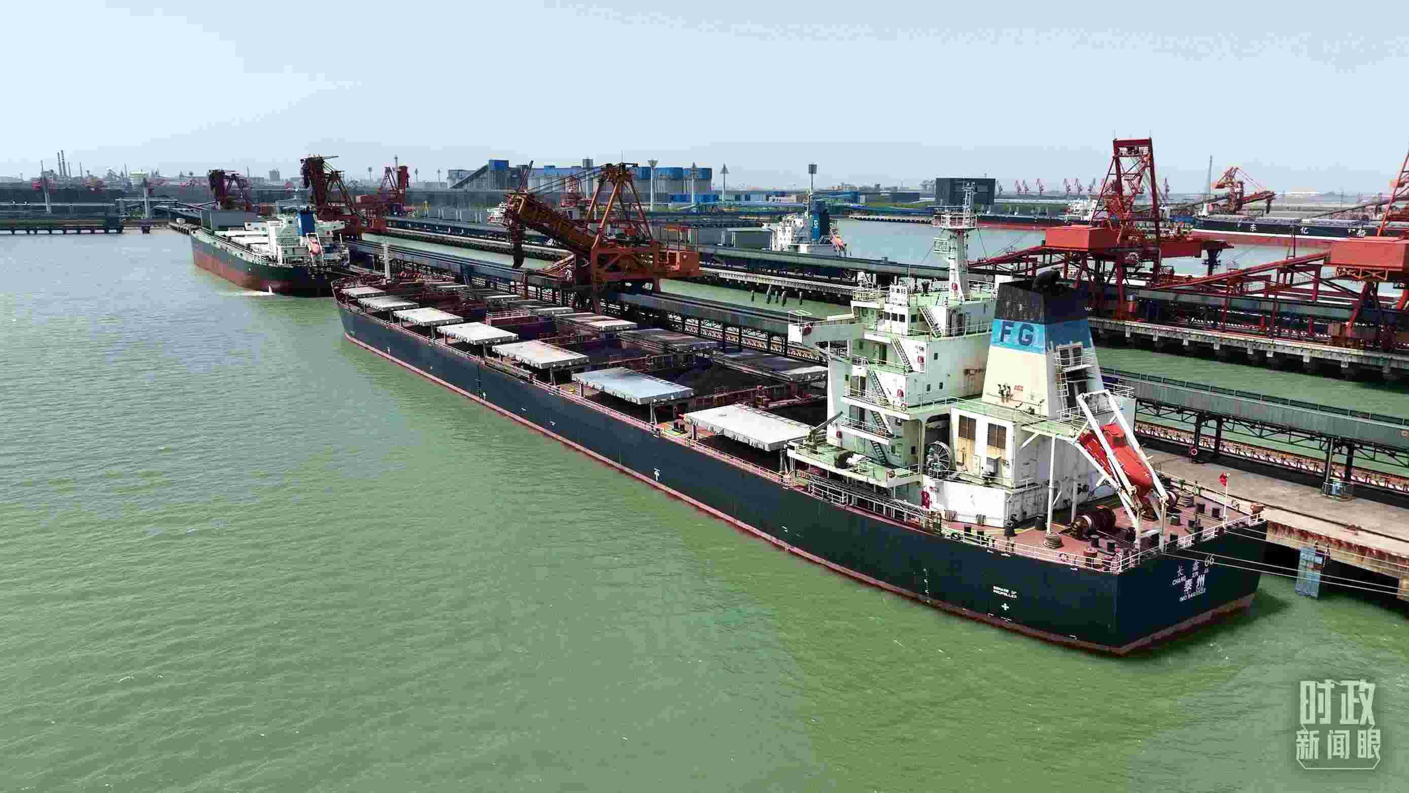 △??吭邳S驊港的神華518輪。(總臺央視記者張曉鵬拍攝)
