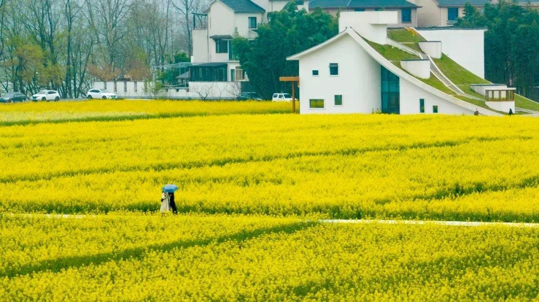 △2023年3月16日,浙江省杭州市桐廬縣梅蓉村千畝油菜花競相綻放,吸引游人休閑賞花。