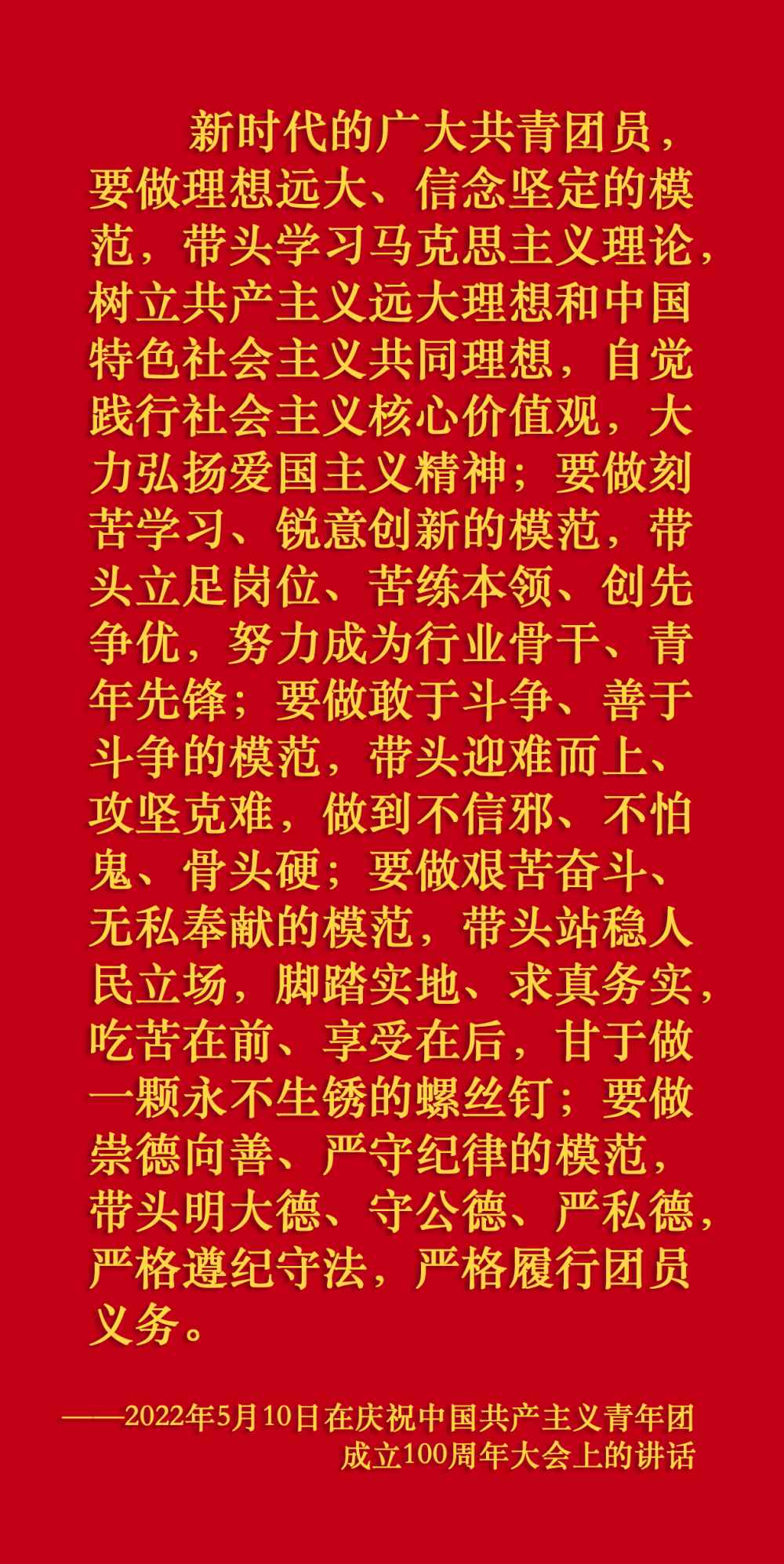 2022年5月10日,慶祝中國(guó)共產(chǎn)主義青年團(tuán)成立100周年大會(huì)在北京人民大會(huì)堂隆重舉行。習(xí)近平在大會(huì)上發(fā)表重要講話。