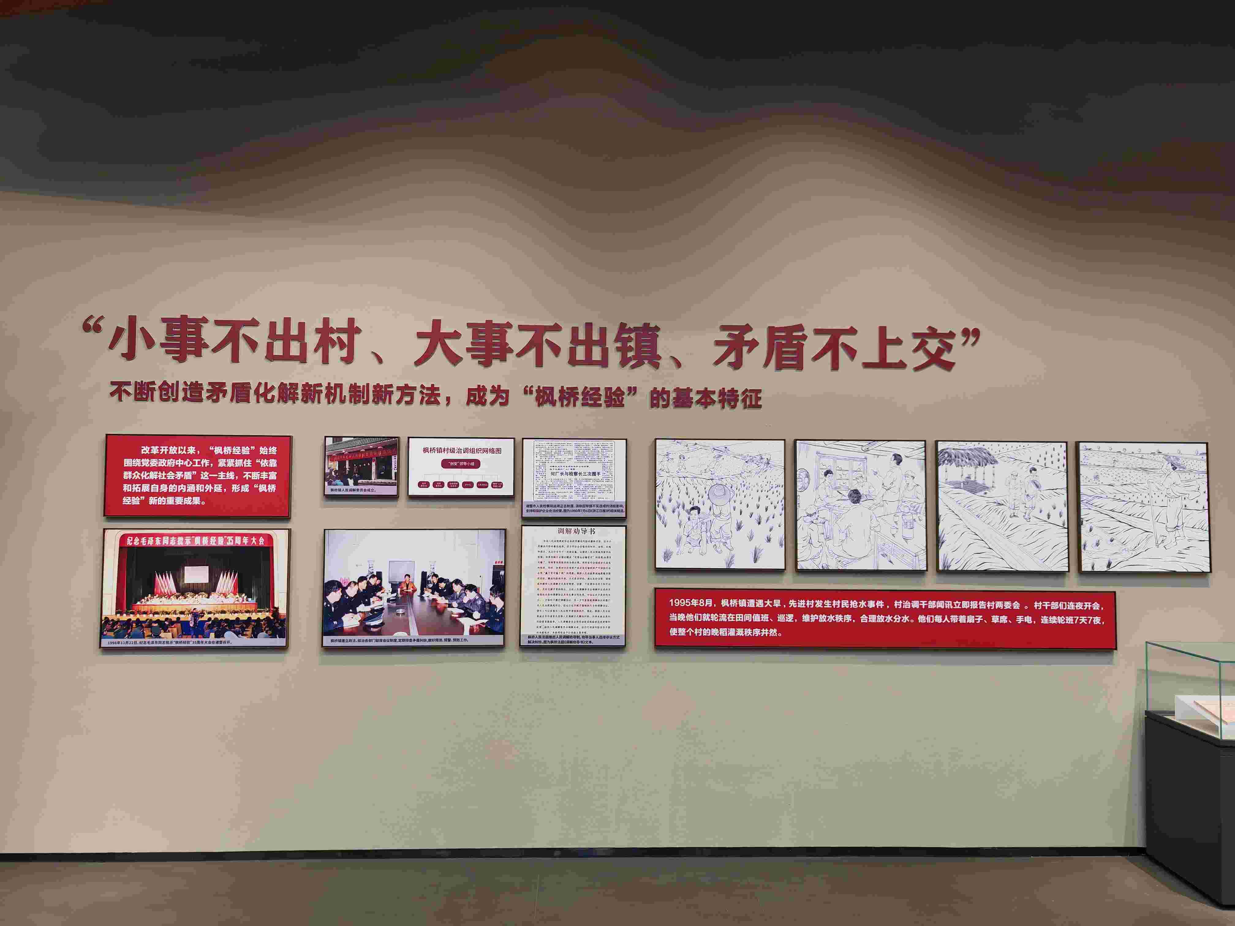 △改革開放以來(lái),“楓橋經(jīng)驗(yàn)”不斷豐富和拓展。圖為楓橋經(jīng)驗(yàn)陳列館里的相關(guān)內(nèi)容展示。(總臺(tái)央廣記者馬喆拍攝)