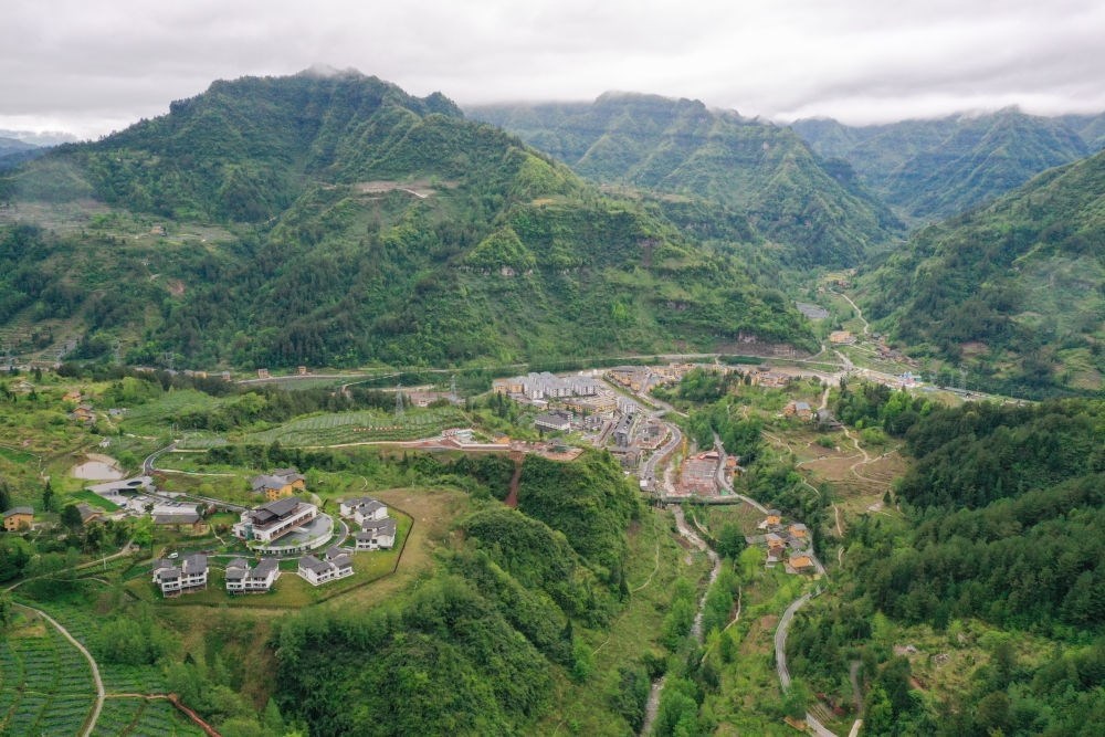 這是重慶市石柱縣中益鄉(xiāng)華溪村景觀(2022年4月14日攝,無人機照片)。目前中益鄉(xiāng)擁有中藥材、特色蔬果等支柱產(chǎn)業(yè)。新華社記者 唐奕 攝