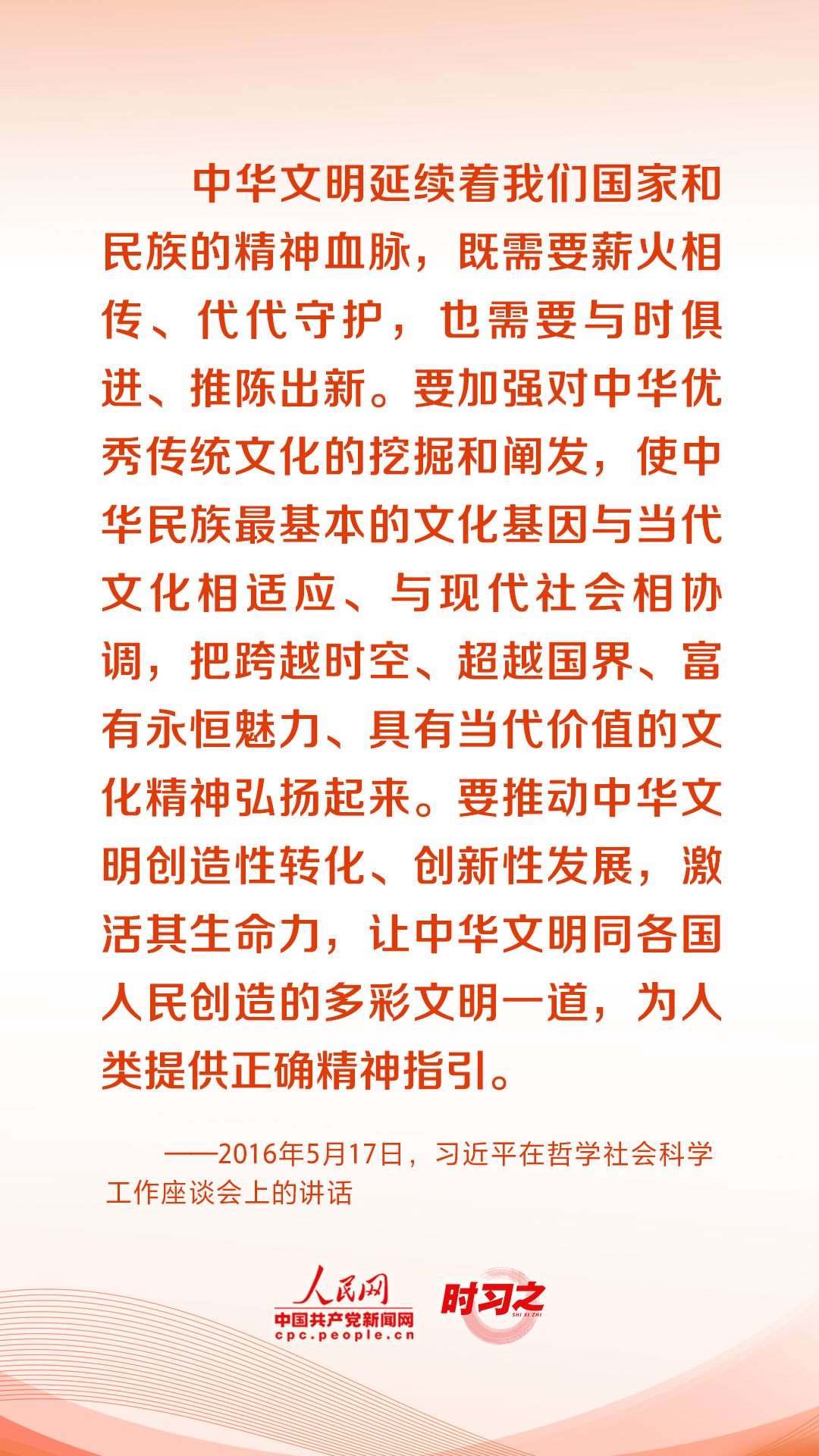 “每一種文明都延續(xù)著一個國家和民族的精神血脈,既需要薪火相傳、代代守護,更需要與時俱進、勇于創(chuàng)新?!秉h的十八大以來,習近平總書記深刻把握新時代歷史方位,以堅定的文化自覺、宏闊的歷史視野、深遠的戰(zhàn)略考量,就文化建設提出了一系列新理念新思想新戰(zhàn)略,引領中華文化創(chuàng)造性轉(zhuǎn)化、創(chuàng)新性發(fā)展,推動中華文脈綿延繁盛、中華文明歷久彌新。