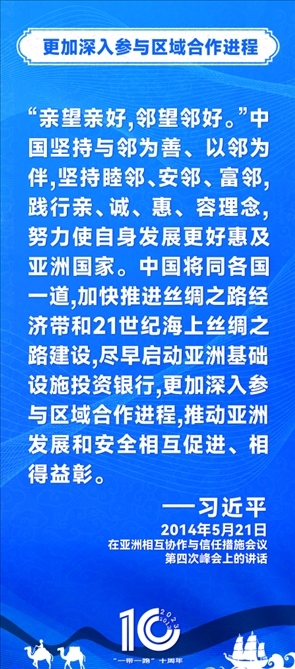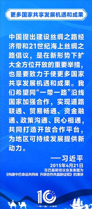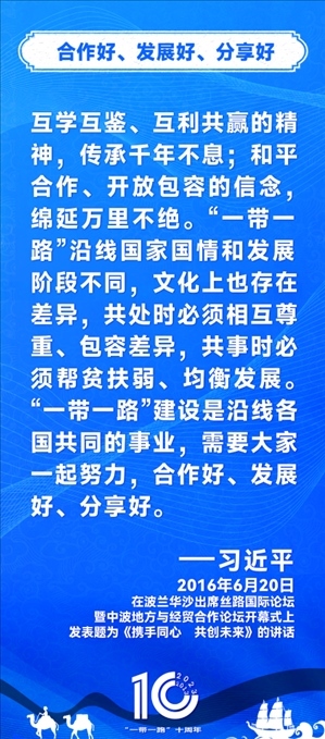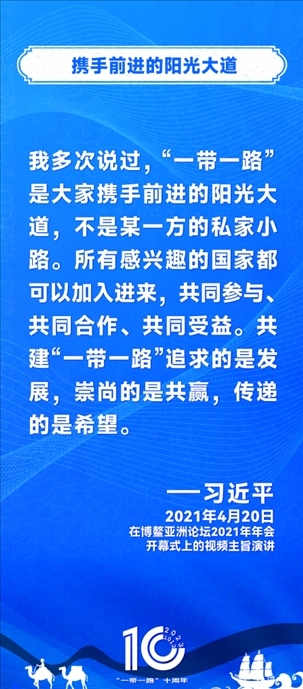 10年前,習(xí)近平主席提出共建“絲綢之路經(jīng)濟(jì)帶”和“21世紀(jì)海上絲綢之路”,即共建“一帶一路”倡議。過去10年來,習(xí)近平主席在多個(gè)場(chǎng)合發(fā)表講話和署名文章,為世界描繪了共建“一帶一路”互聯(lián)互通、合作共贏的宏偉藍(lán)圖。