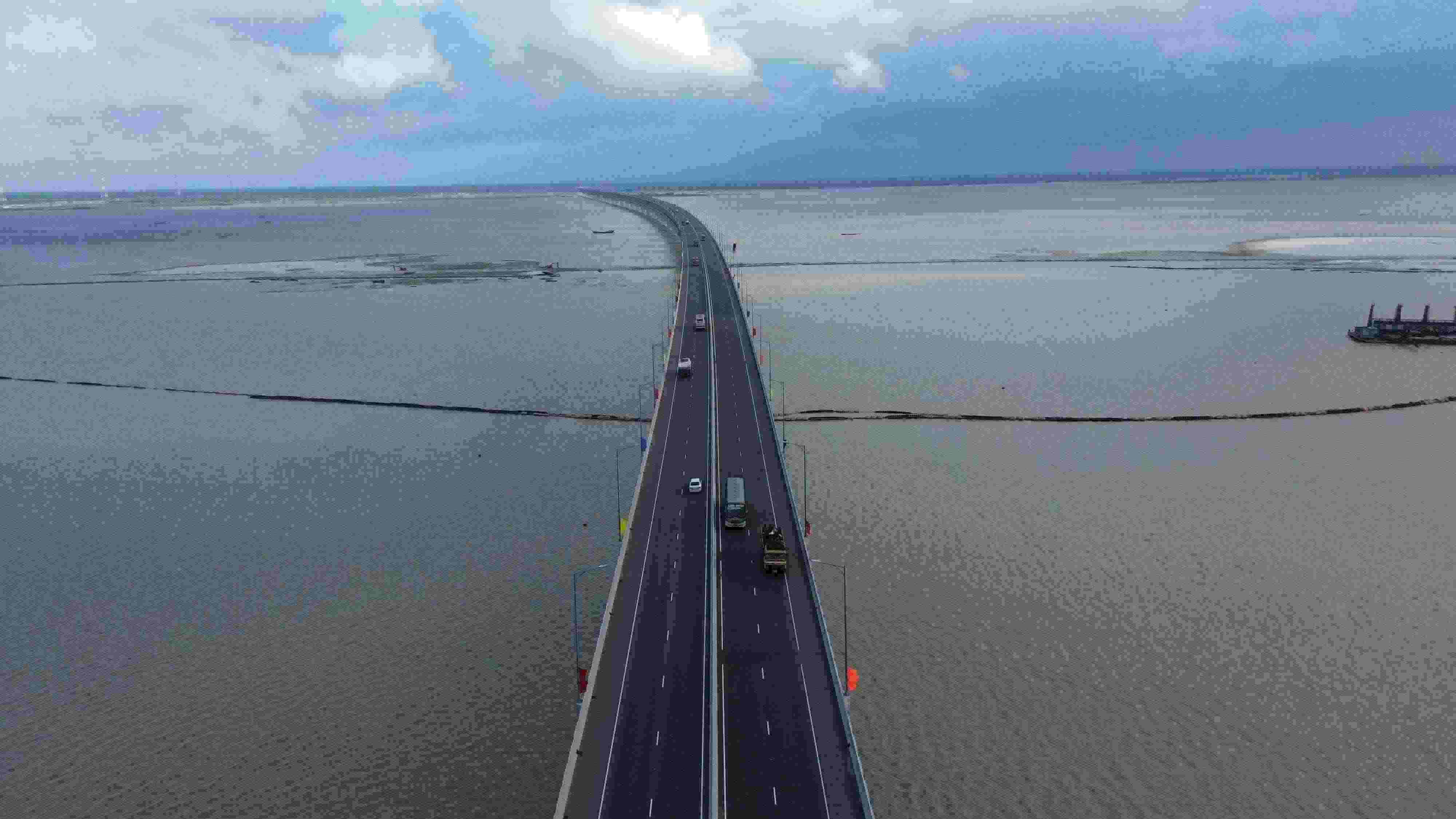 △2023年6月25日,位于孟加拉國首都達卡西南約40公里處的帕德瑪大橋。中企承建的孟加拉國最大橋梁項目——帕德瑪大橋,是連接中國及“泛亞鐵路”的重要通道之一。