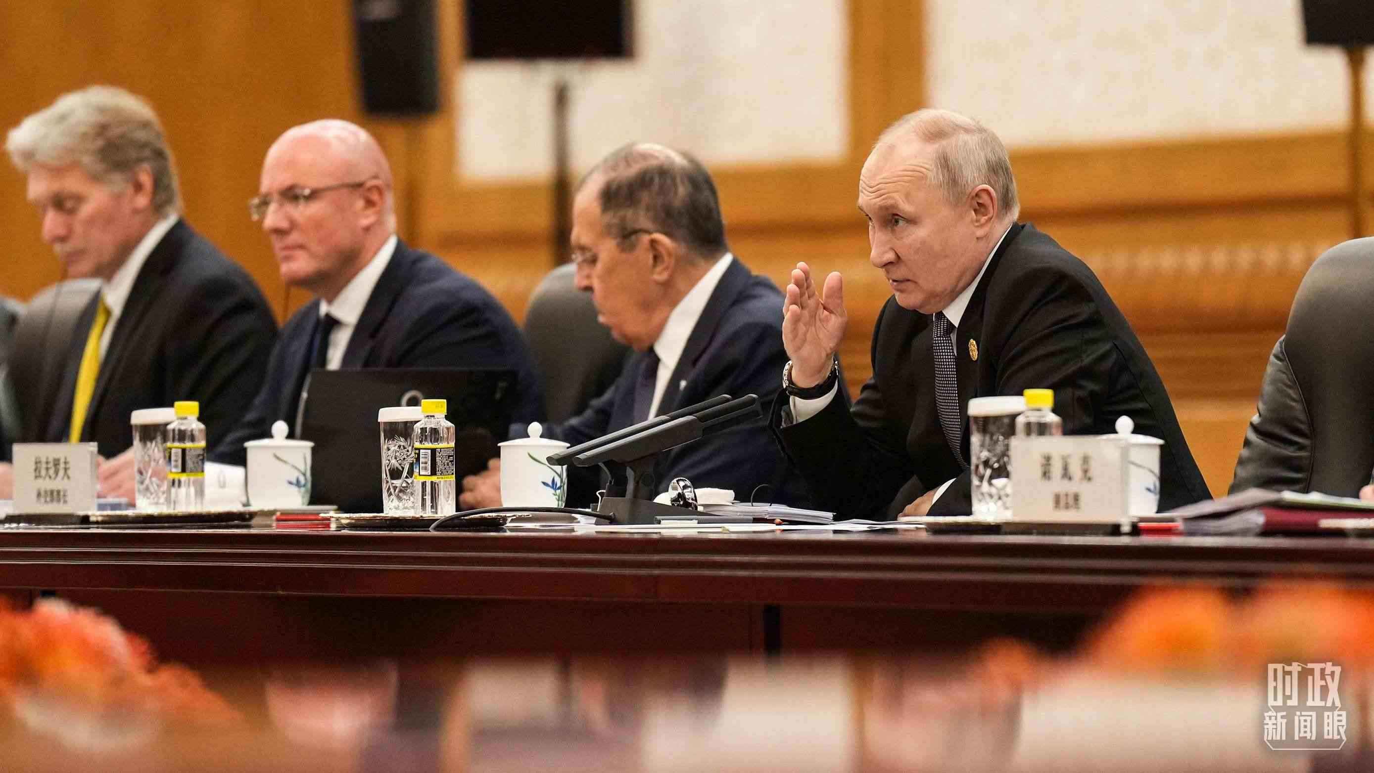 △俄羅斯總統(tǒng)普京在會(huì)談現(xiàn)場(chǎng)。(總臺(tái)國(guó)廣記者李晉拍攝)