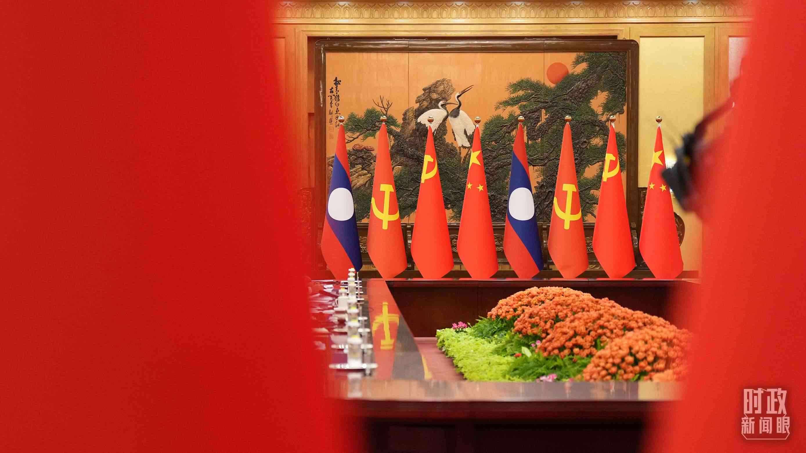 △中老領(lǐng)導(dǎo)人會(huì)見(jiàn)現(xiàn)場(chǎng)。(總臺(tái)國(guó)廣記者李晉拍攝)