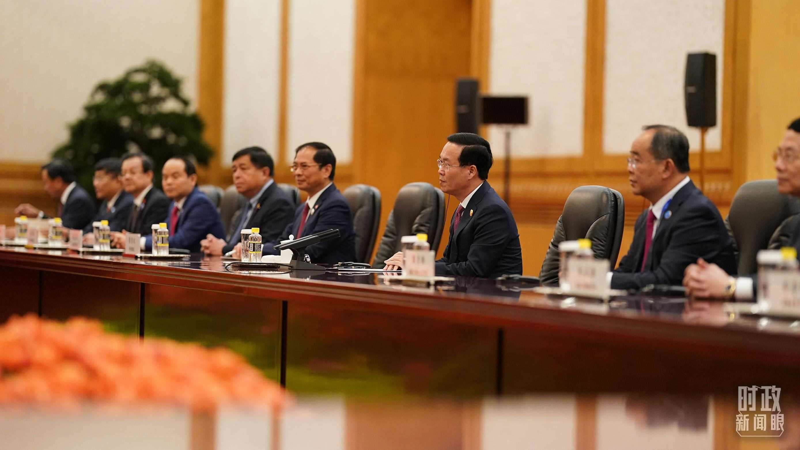 △中越兩國(guó)領(lǐng)導(dǎo)人會(huì)見(jiàn)現(xiàn)場(chǎng)。(總臺(tái)國(guó)廣記者李晉拍攝)