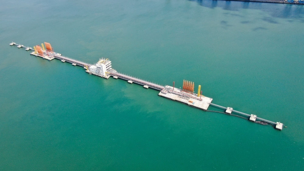 這是肯尼亞蒙巴薩油碼頭(2023年9月20日攝,無(wú)人機(jī)照片)。新華社發(fā)(中國(guó)交通建設(shè)股份有限公司肯尼亞蒙巴薩新建油碼頭項(xiàng)目部供圖)