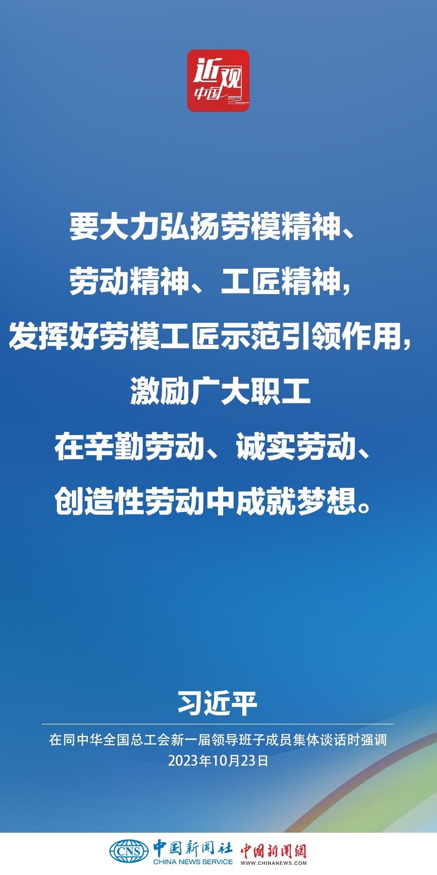 中共中央總書記、國家主席、中央軍委主席習(xí)近平23日下午在中南海同中華全國總工會新一屆領(lǐng)導(dǎo)班子成員集體談話并發(fā)表重要講話。他強調(diào)——