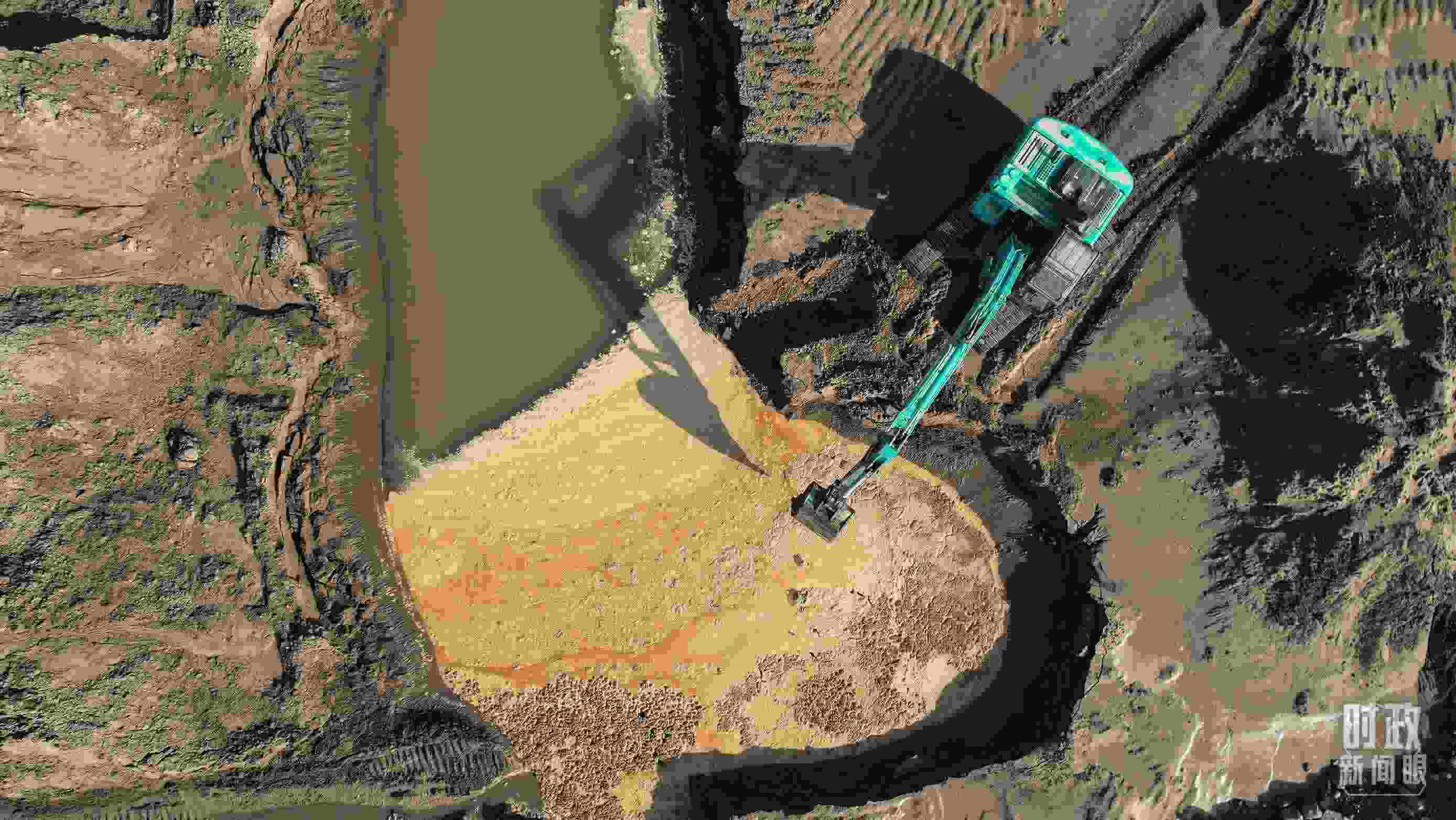 △ 白溝河治理工程(涿州段)施工現(xiàn)場航拍。(總臺(tái)國廣記者李晉拍攝)