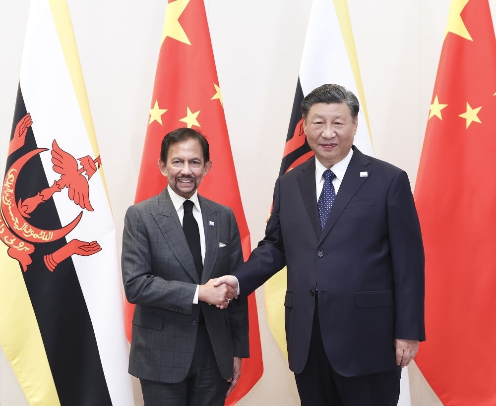 當(dāng)?shù)貢r(shí)間11月16日下午,國家主席習(xí)近平在舊金山會(huì)見文萊蘇丹哈桑納爾。新華社記者 姚大偉 攝