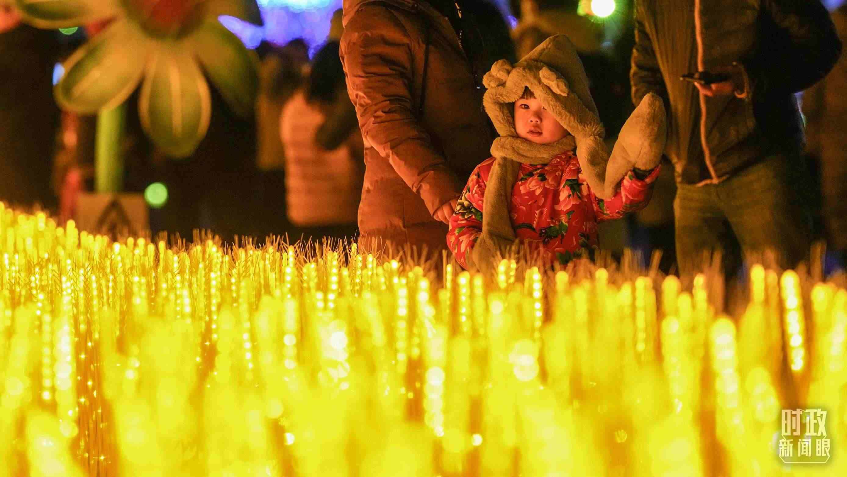 △夜幕降臨,天津市民紛紛來到楊柳青鎮(zhèn)觀花燈、迎新春。(總臺(tái)國(guó)廣記者李晉拍攝)