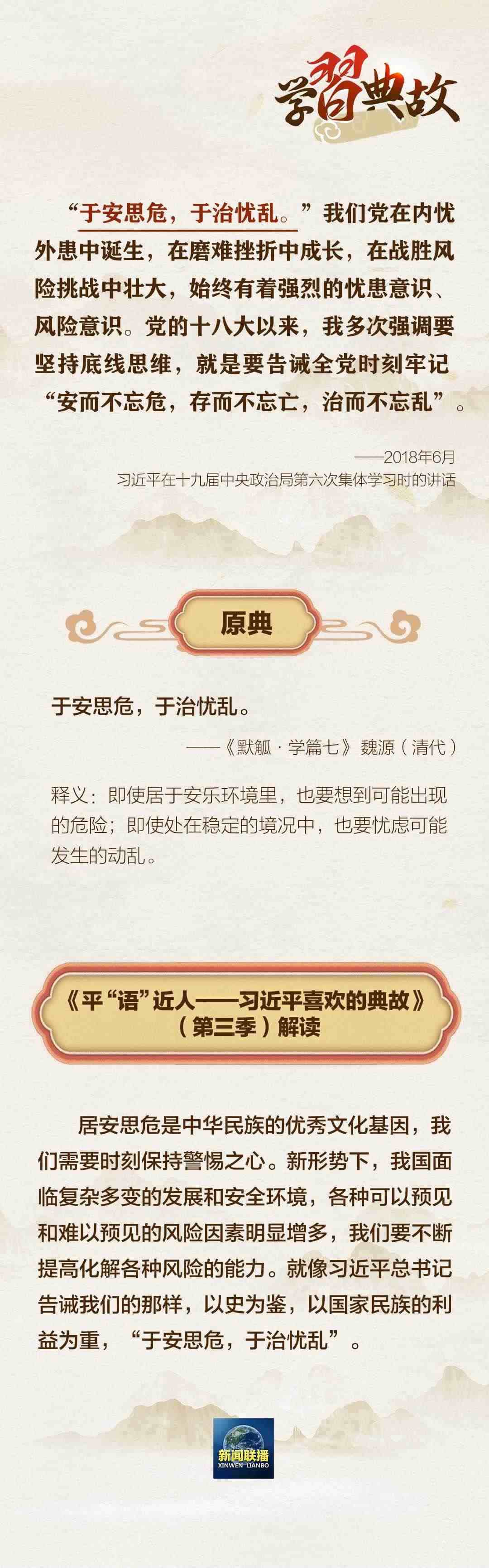 黨的二十大報(bào)告中,習(xí)近平總書記指出,國家安全是民族復(fù)興的根基,社會穩(wěn)定是國家強(qiáng)盛的前提。必須堅(jiān)定不移貫徹總體國家安全觀,把維護(hù)國家安全貫穿黨和國家工作各方面全過程,確保國家安全和社會穩(wěn)定。圍繞“國家安全”這一主題,總書記曾講到哪些典故?一起學(xué)習(xí)↓↓↓
