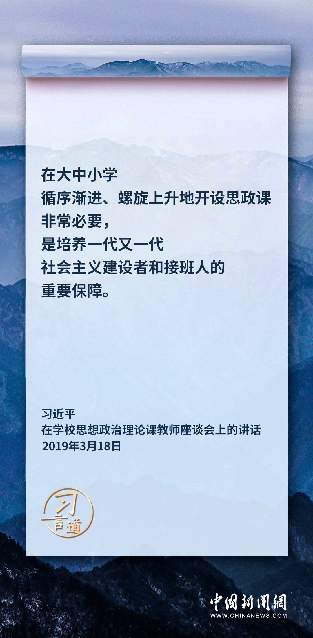“蒙以養(yǎng)正,圣功也?!绷?xí)近平總書記高度重視思政課建設(shè),強(qiáng)調(diào)在大中小學(xué)循序漸進(jìn)、螺旋上升地開(kāi)設(shè)思政課非常必要,是培養(yǎng)一代又一代社會(huì)主義建設(shè)者和接班人的重要保障。