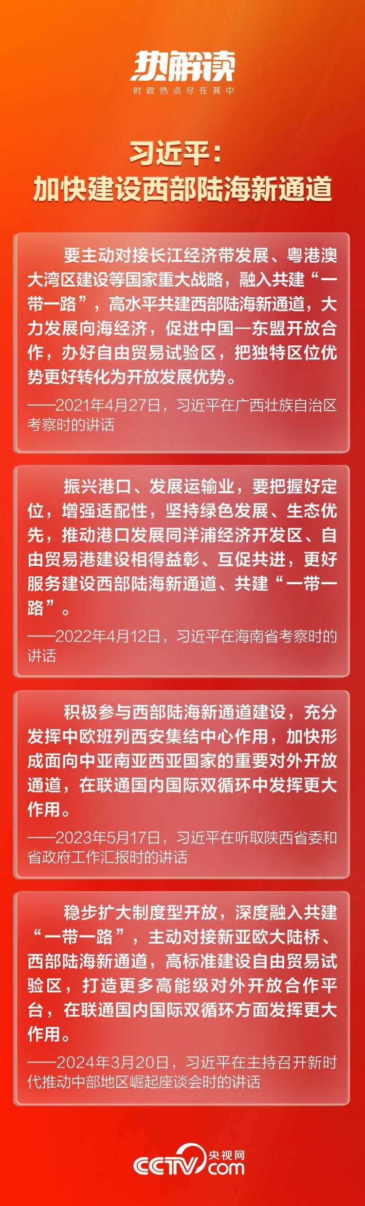 總書記一直對這條通道的建設(shè)十分關(guān)切。近年來,總書記在貴州、陜西、廣西等西部陸海新通道沿線省區(qū)考察時,多次對高水平共建西部陸海新通道作出重要指示。