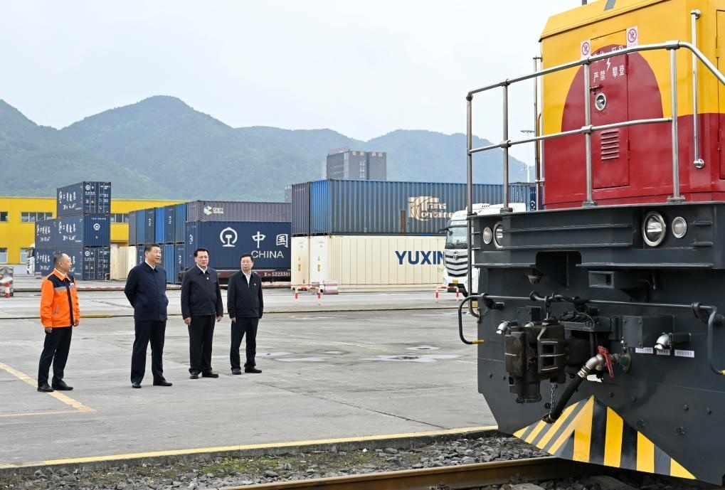 4月22日至23日,習(xí)近平總書記在重慶市考察調(diào)研。他來到重慶國(guó)際物流樞紐園區(qū),了解當(dāng)?shù)丶涌旖ㄔO(shè)西部陸海新通道等情況。