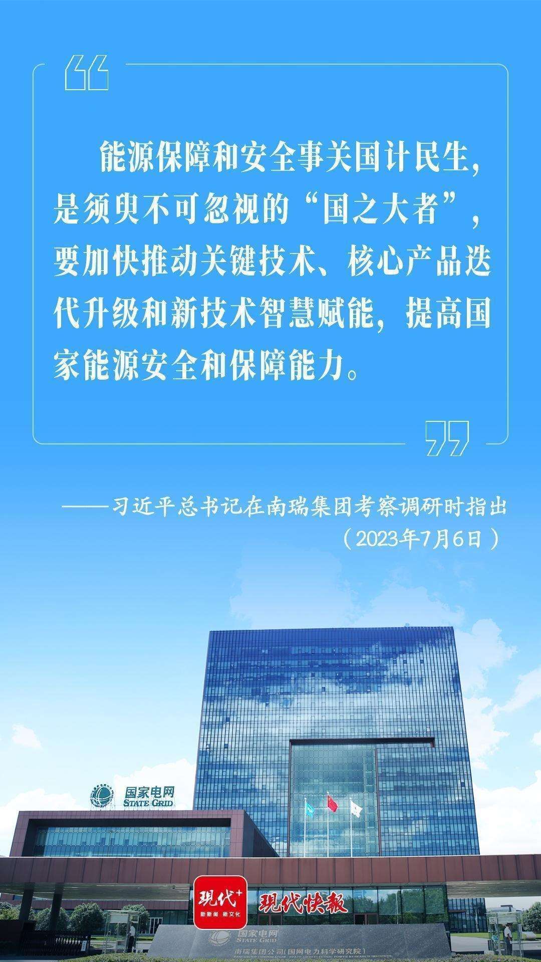 2023年7月6日,習(xí)近平總書記在江蘇南京考察南瑞集團(tuán)時(shí)指出,能源保障和安全事關(guān)國計(jì)民生,是須臾不可忽視的“國之大者”。要加快推動關(guān)鍵技術(shù)、核心產(chǎn)品迭代升級和新技術(shù)智慧賦能,提高國家能源安全和保障能力。