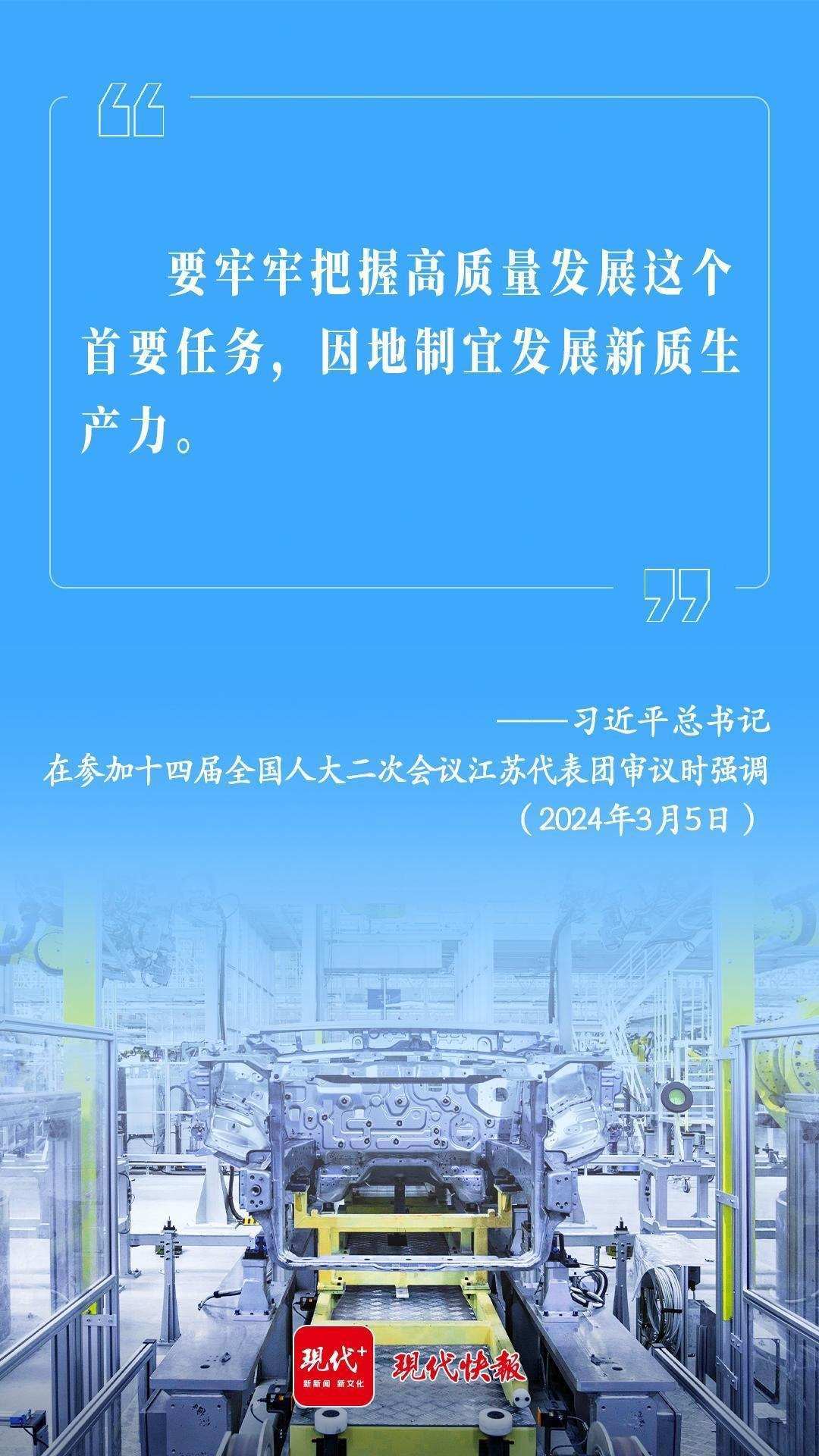 2024年3月5日,習(xí)近平總書記在參加十四屆全國人大二次會議江蘇代表團(tuán)審議時(shí)強(qiáng)調(diào):“要牢牢把握高質(zhì)量發(fā)展這個(gè)首要任務(wù),因地制宜發(fā)展新質(zhì)生產(chǎn)力?!?/p>