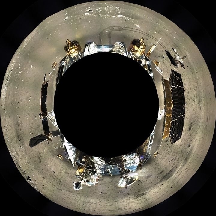 這是嫦娥三號地形地貌相機拍攝的著陸器周邊360°范圍的全景鑲嵌影像圖,采用方位投影方式表達(2013年12月17日至12月18日攝)。新華社發(fā)