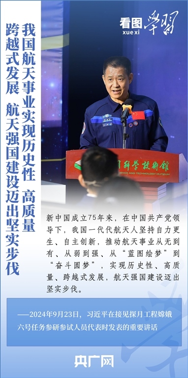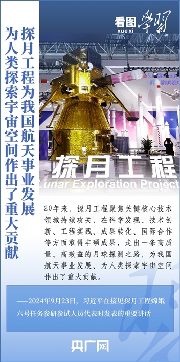 中國(guó)探月工程成果凝結(jié)著我國(guó)幾代航天人的智慧和心血。9月23日,習(xí)近平總書記接見(jiàn)探月工程嫦娥六號(hào)任務(wù)參研參試人員代表并發(fā)表重要講話??倳浉叨瓤隙ㄦ隙鹆?hào)任務(wù)成功的重要意義,以及探月工程為我國(guó)航天事業(yè)發(fā)展、為人類探索宇宙空間作出的重大貢獻(xiàn),勉勵(lì)航天戰(zhàn)線工作者再接再厲、乘勢(shì)而上,為建設(shè)航天強(qiáng)國(guó)再立新功。一起來(lái)學(xué)習(xí)!