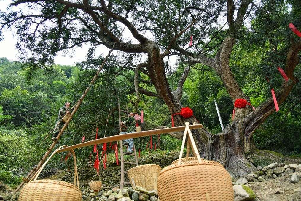 柯橋區(qū)稽東鎮(zhèn)古香榧樹在保護中煥發(fā)生機,成為當?shù)乩习傩盏摹爸赂粯洹?。(柯橋區(qū)委宣傳部供圖)