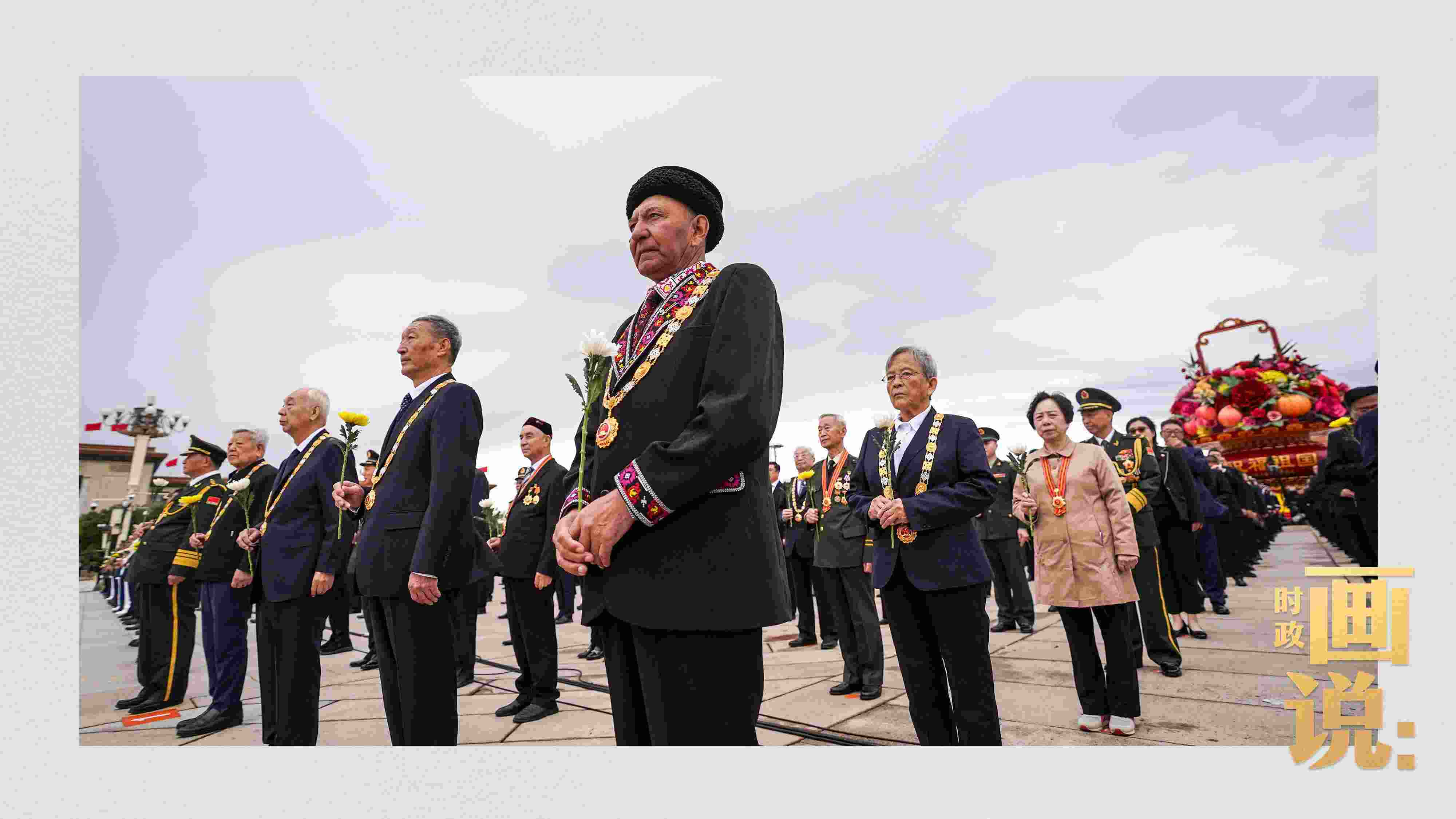 △少年兒童和各界代表依次走到紀(jì)念碑前,獻(xiàn)上手中鮮花并瞻仰紀(jì)念碑。