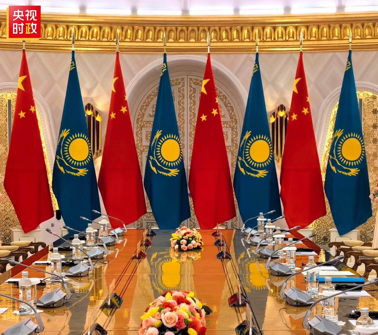 當(dāng)?shù)貢r間7月3日上午,國家主席習(xí)近平在阿斯塔納總統(tǒng)府同托卡耶夫總統(tǒng)舉行小范圍會談。