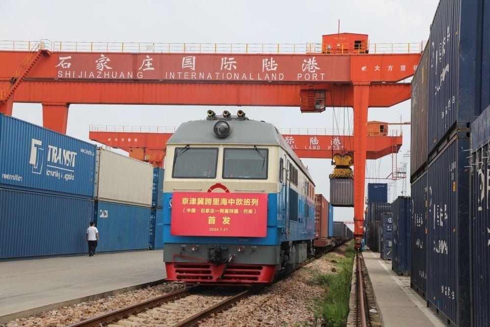 △2024年7月27日,京津冀首趟跨里海中歐班列(石家莊-巴庫)從石家莊國際陸港啟程。