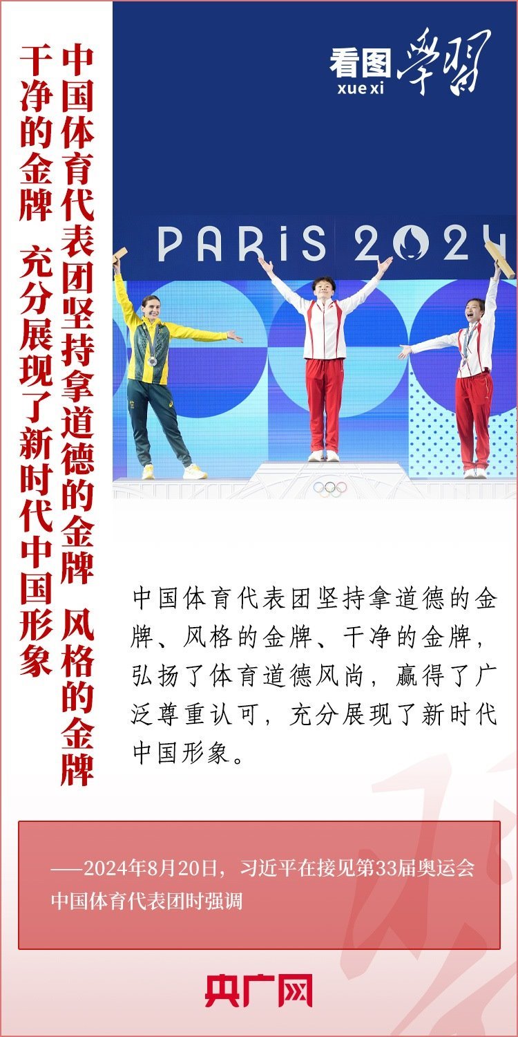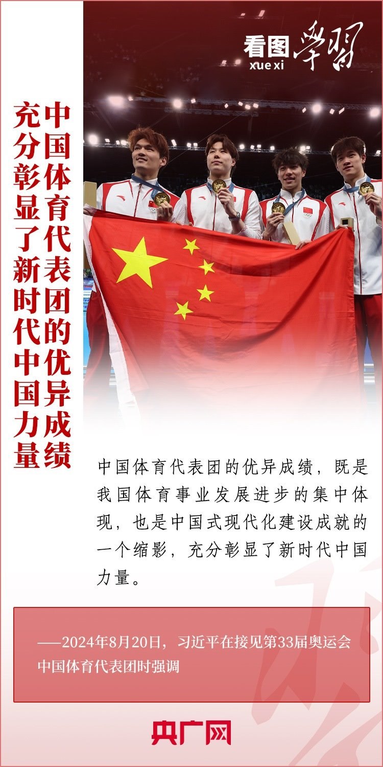 “祖國和人民為你們驕傲,為你們點(diǎn)贊?!?月20日,習(xí)近平總書記在人民大會堂接見第33屆奧運(yùn)會中國體育代表團(tuán)并發(fā)表重要講話。總書記高度肯定中國體育代表團(tuán)取得的優(yōu)異成績,贊揚(yáng)他們充分彰顯了新時代中國力量、生動詮釋了新時代中國精神、充分展現(xiàn)了新時代中國形象,勉勵大家戒驕戒躁、再接再厲,為建設(shè)體育強(qiáng)國再立新功。一起來學(xué)習(xí)!