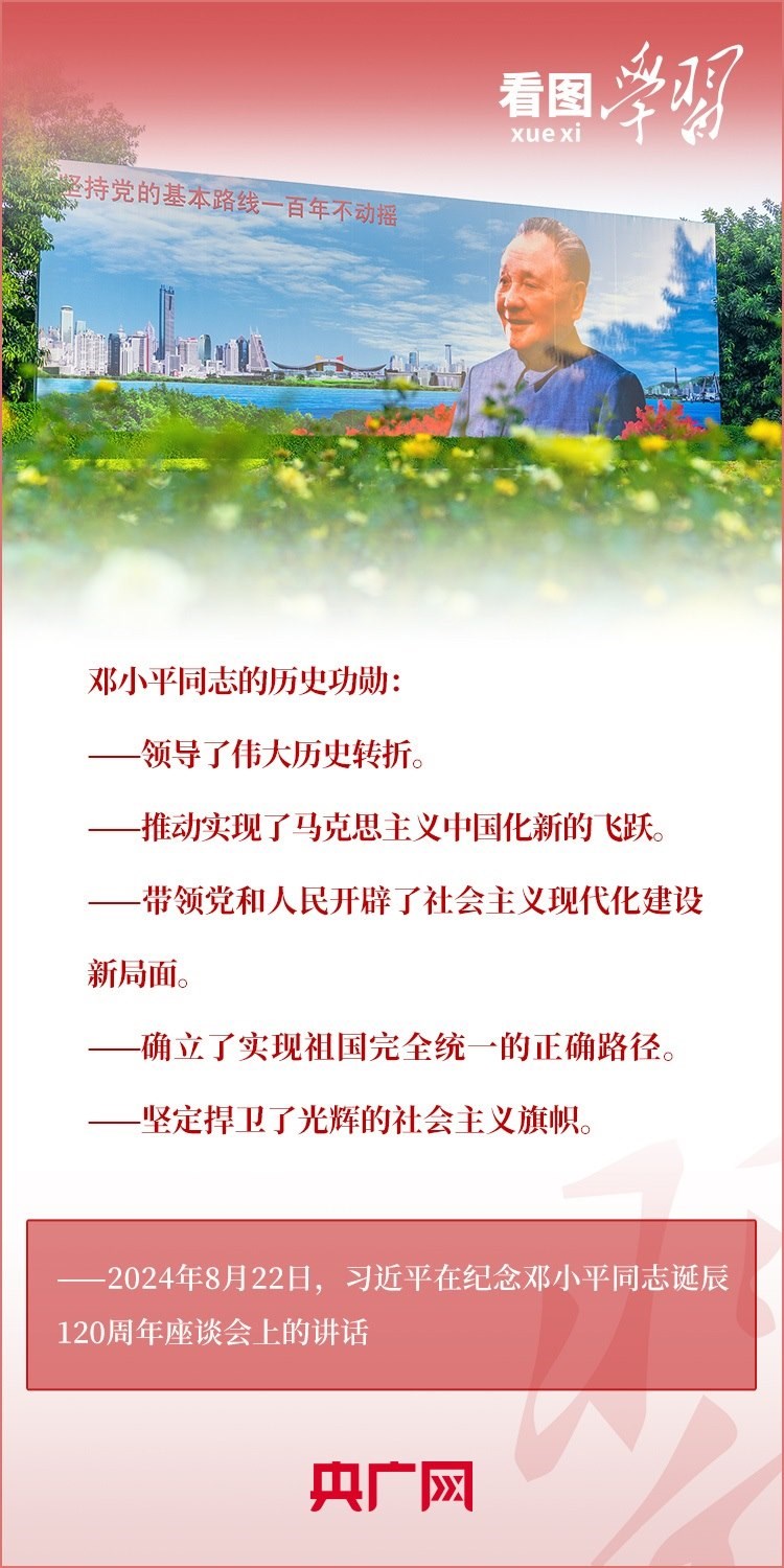 8月22日,習(xí)近平總書記在紀(jì)念鄧小平同志誕辰120周年座談會(huì)上發(fā)表重要講話指出,鄧小平同志的歷史功勛是全方位的、開創(chuàng)性的,對(duì)中國(guó)和世界的影響是深刻的、長(zhǎng)遠(yuǎn)的??倳洀?qiáng)調(diào),對(duì)鄧小平同志最好的紀(jì)念,就是把他開創(chuàng)的中國(guó)特色社會(huì)主義事業(yè)繼續(xù)推向前進(jìn)。我們要緊緊圍繞以中國(guó)式現(xiàn)代化全面推進(jìn)強(qiáng)國(guó)建設(shè)、民族復(fù)興偉業(yè)這個(gè)中心任務(wù),繼往開來,奮發(fā)進(jìn)取。一起來學(xué)習(xí)!