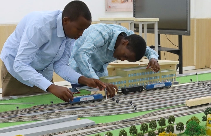 2022年9月19日,在位于吉布提首都吉布提市的吉布提工商學校,學生在魯班工坊鐵道運營沙盤教學區(qū)學習。新華社記者 董江輝 攝