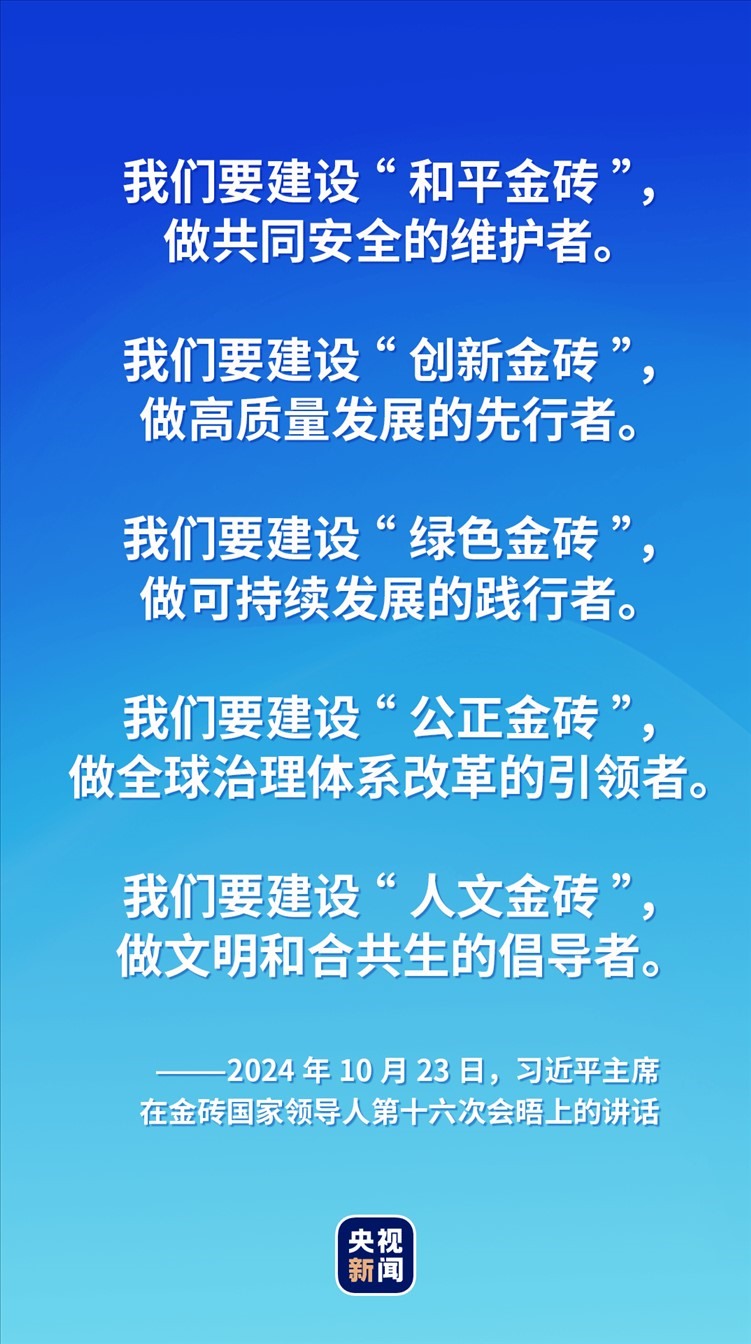 對于如何推動“大金磚合作”高質(zhì)量發(fā)展,習(xí)近平主席提出五點建議——建設(shè)“和平金磚”“創(chuàng)新金磚”“綠色金磚”“公正金磚”“人文金磚”,攜手更多“全球南方”國家共同推動構(gòu)建人類命運共同體。