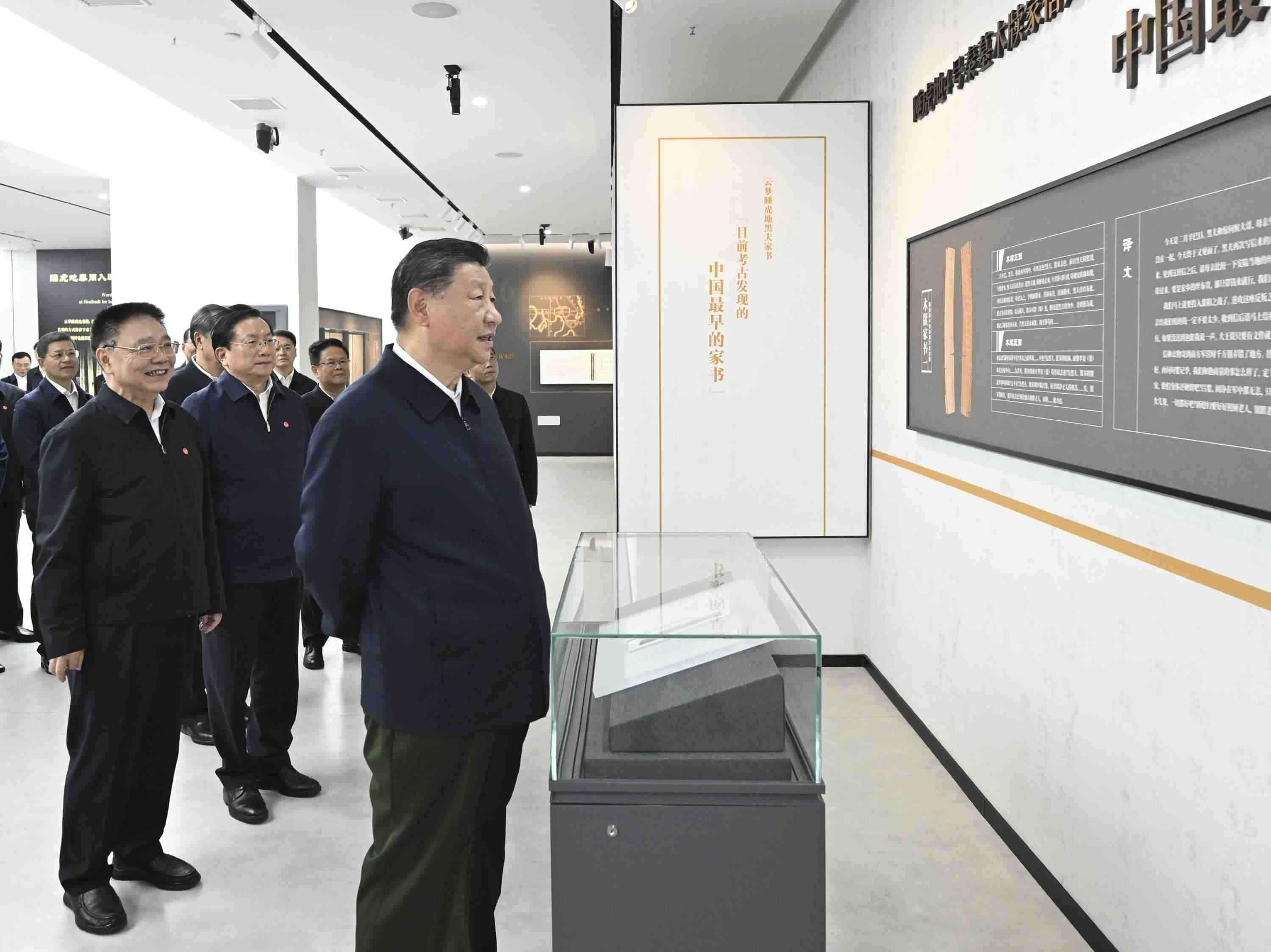 4日下午,習(xí)近平總書記來到湖北孝感市云夢(mèng)縣博物館,參觀云夢(mèng)出土秦漢簡(jiǎn)牘展,詳細(xì)了解簡(jiǎn)牘內(nèi)容、歷史文化價(jià)值和保護(hù)研究情況。習(xí)近平說,古代簡(jiǎn)牘非常珍貴,是我們國家信史的重要實(shí)物佐證,要善加保護(hù),做好研究。要不斷通過考古發(fā)掘,為國家歷史提供更多不容置疑的佐證材料。(人民日?qǐng)?bào)客戶端杜尚澤)