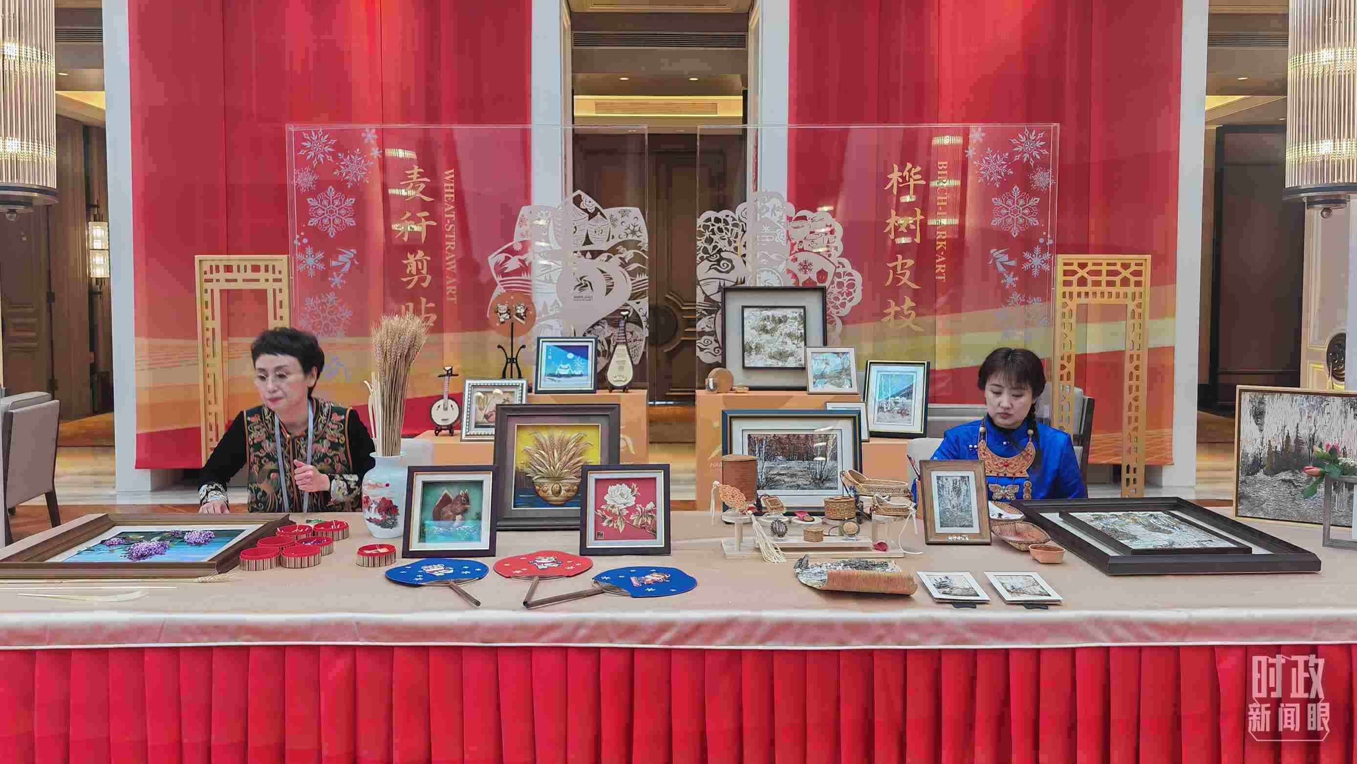 △歡迎宴會開始前的黑龍江非物質(zhì)文化遺產(chǎn)展示。(總臺央視記者史偉、央廣記者馬喆拍攝)