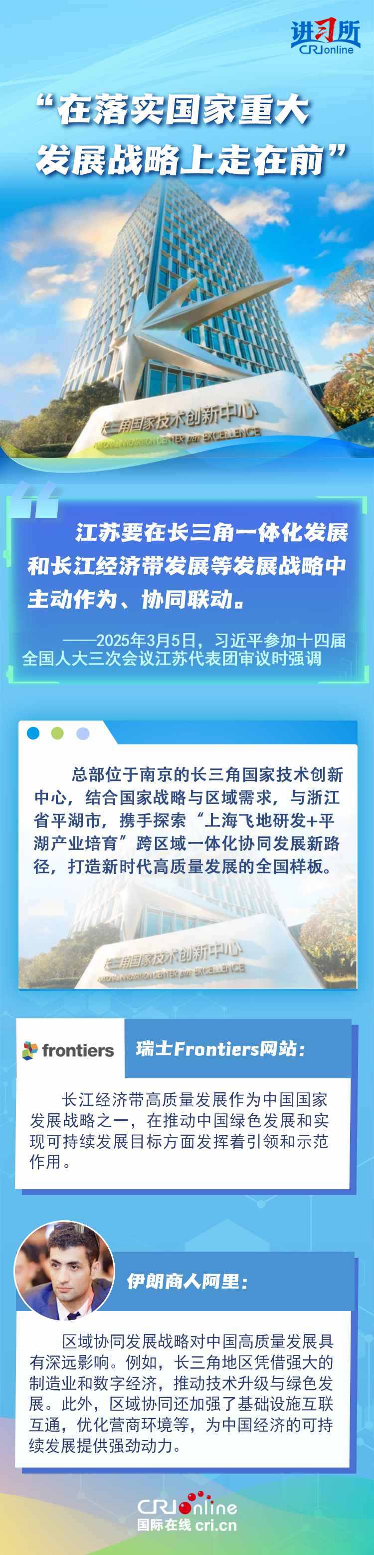 從紫金山實驗室的6G突破到蘇州工業(yè)園區(qū)的開放升級,從長三角協(xié)同創(chuàng)新到永聯(lián)村的共富實踐,江蘇在中國式現(xiàn)代化新實踐上已成為世界觀察中國高質(zhì)量發(fā)展的重要窗口。國際人士認(rèn)為,中國因地制宜的創(chuàng)新發(fā)展之路有力推動了國家現(xiàn)代化進程與民生福祉提升。