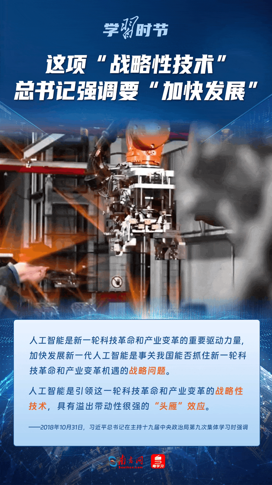 人工智能是引領(lǐng)科技革命和產(chǎn)業(yè)變革的戰(zhàn)略性技術(shù)。黨的十八大以來(lái),習(xí)近平總書(shū)記把創(chuàng)新擺在國(guó)家發(fā)展全局的核心位置,高度重視人工智能發(fā)展,多次談及這項(xiàng)“戰(zhàn)略性技術(shù)”,強(qiáng)調(diào)要“加快發(fā)展”,為人工智能賦能千行百業(yè)指明方向。讓我們一起來(lái)學(xué)習(xí)總書(shū)記關(guān)于人工智能的重要論述!