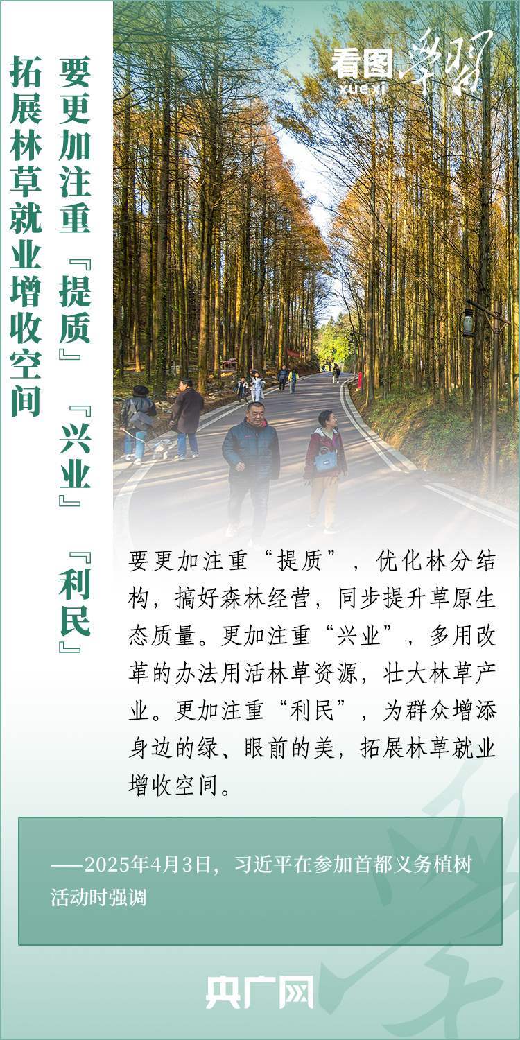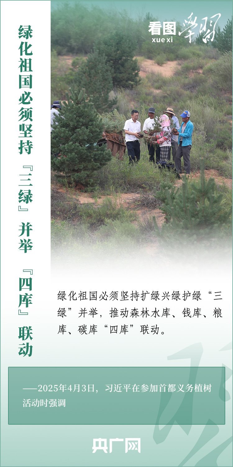 植樹造林是生態(tài)文明建設重要一環(huán)。4月3日,習近平總書記參加首都義務植樹活動。在植樹現(xiàn)場,總書記高度肯定國土綠化工作取得來之不易的成績,強調(diào)綠化祖國必須堅持“三綠”并舉、“四庫”聯(lián)動,要更加注重“提質(zhì)”“興業(yè)”“利民”,“匯聚共建美麗中國的磅礴力量,讓祖國大地更加綠意盎然、生機勃發(fā)”。一起來學習!