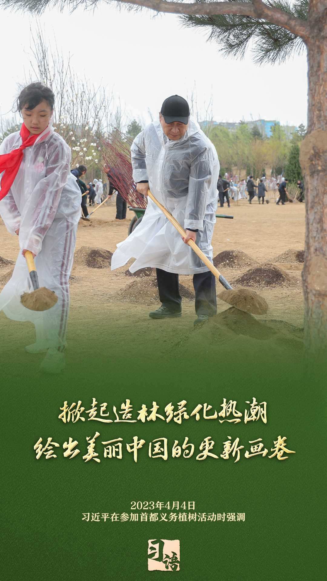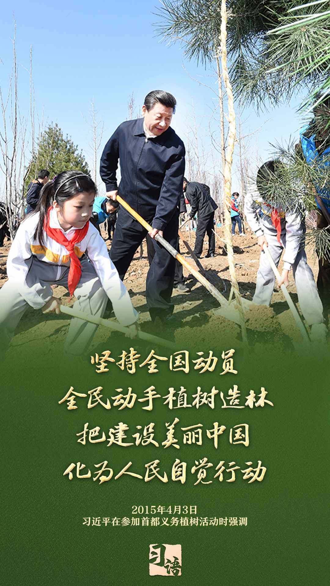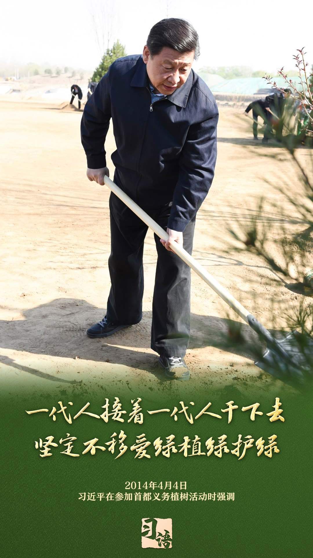 “植樹造林是一件很有意義的事情,是一項功在當(dāng)代、利在千秋的崇高事業(yè),要一以貫之、持續(xù)做下去。”自2013年以來的13個春天里,無論晴雨,習(xí)近平總書記都會拿起鐵鍬,與干部群眾一起參加首都義務(wù)植樹活動。鏟土造坑、培土圍堰、提水澆灌,總書記身體力行種下綠色的希望,對擴綠興綠護綠、建設(shè)美麗中國提出明確要求。一起學(xué)習(xí)。