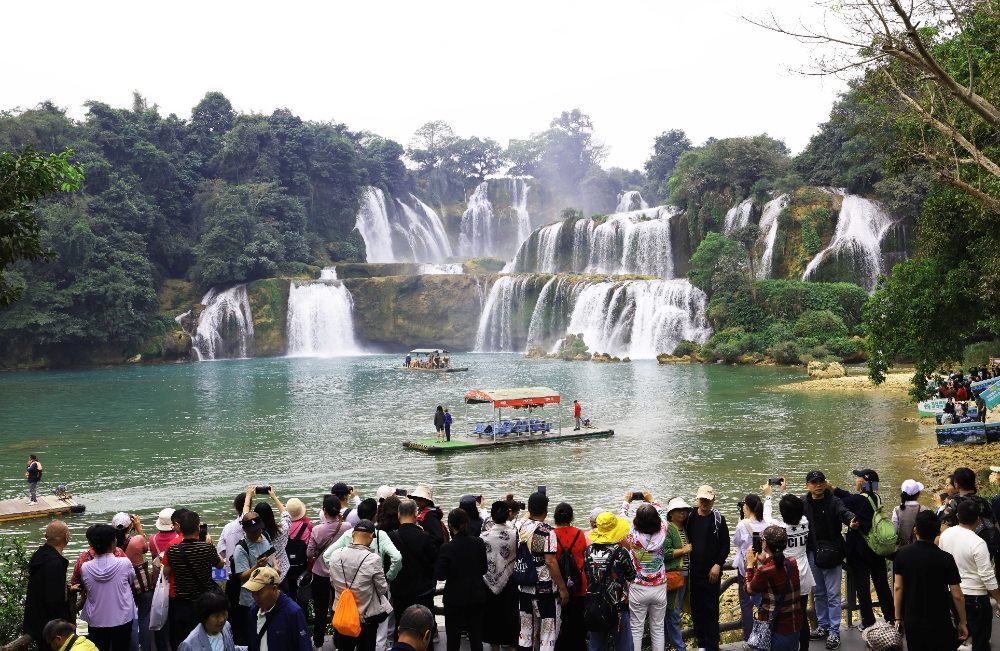 2024年12月5日,游客在中越德天(板約)瀑布跨境旅游合作區(qū)中國(guó)一側(cè)游覽。新華社記者 金皓原 攝