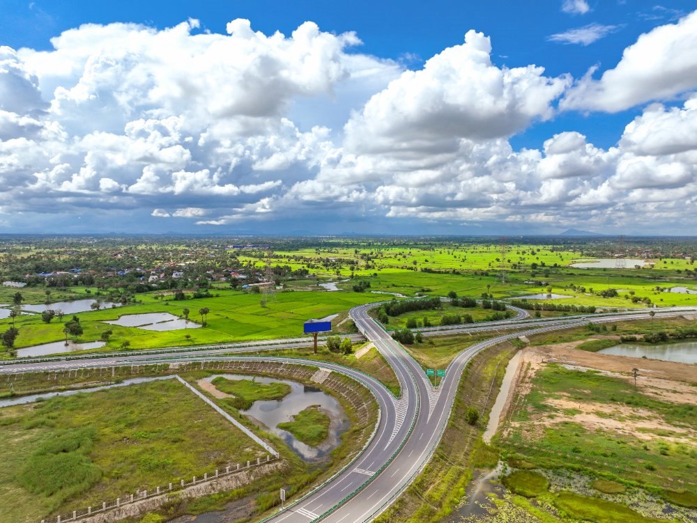 這是2024年9月25日在柬埔寨磅士卑省拍攝的金港高速公路(無(wú)人機(jī)照片)。金港高速公路是中國(guó)路橋工程有限責(zé)任公司(中國(guó)路橋)按“建造-運(yùn)營(yíng)-移交”模式投資的項(xiàng)目。新華社發(fā)(柬埔寨金港高速公路有限公司供圖)