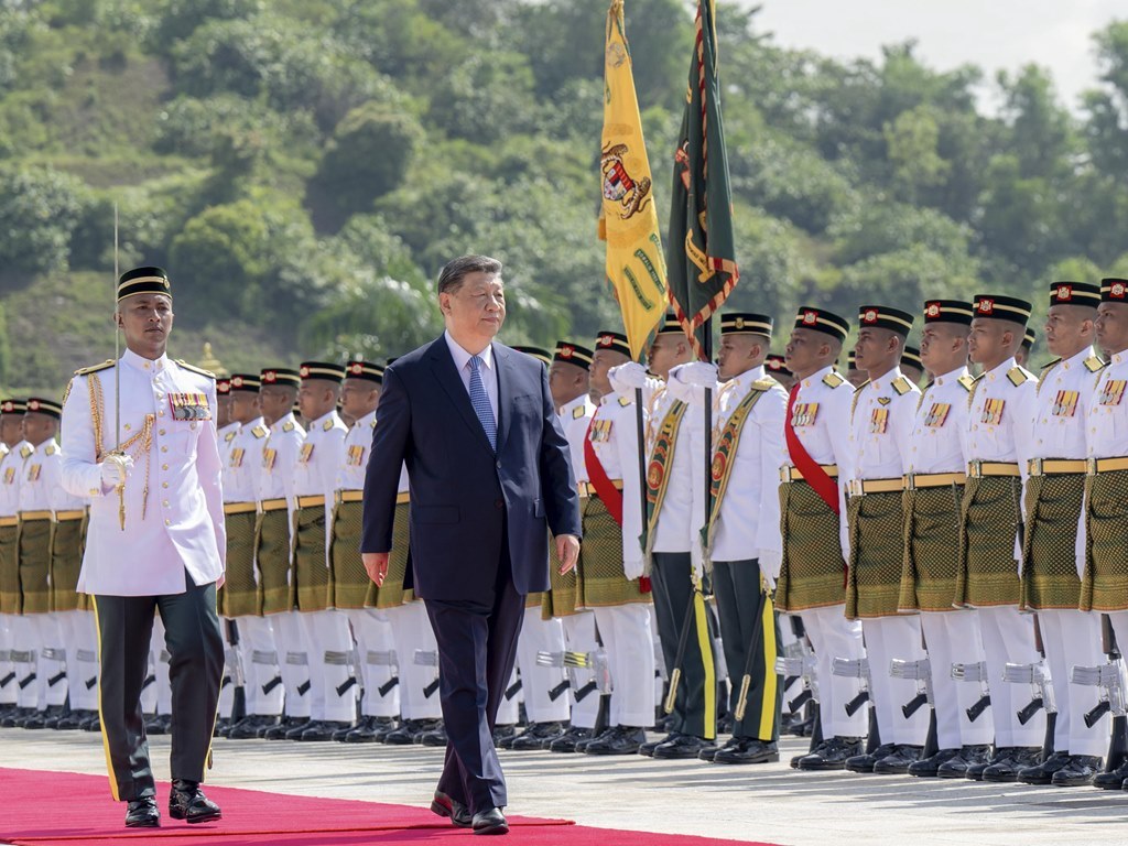 4月16日上午,易卜拉欣在馬來西亞國家王宮廣場為習(xí)近平舉行隆重歡迎儀式。