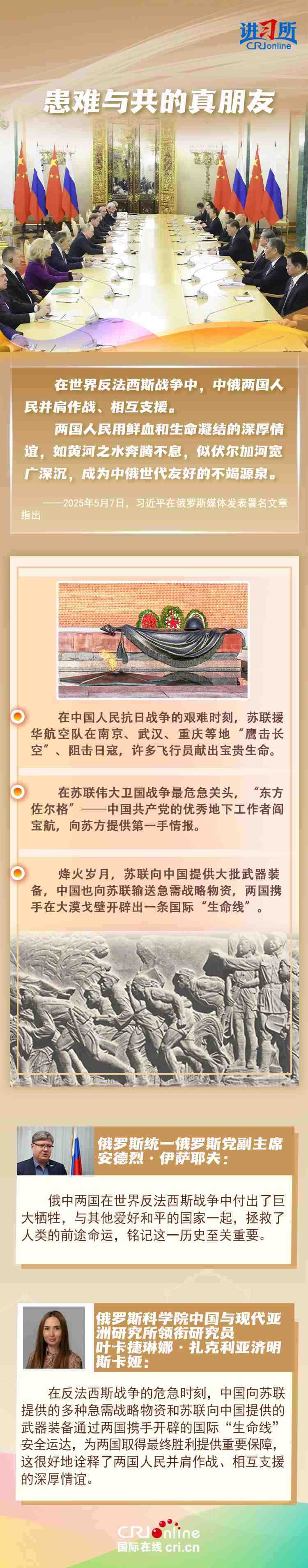 “兩國(guó)人民用鮮血和生命凝結(jié)的深厚情誼,如黃河之水奔騰不息,似伏爾加河寬廣深沉,成為中俄世代友好的不竭源泉。”今年是中國(guó)人民抗日戰(zhàn)爭(zhēng)、蘇聯(lián)偉大衛(wèi)國(guó)戰(zhàn)爭(zhēng)暨世界反法西斯戰(zhàn)爭(zhēng)勝利80周年,也是聯(lián)合國(guó)成立80周年。在這一重要?dú)v史時(shí)間節(jié)點(diǎn),習(xí)近平主席此訪不僅為中俄關(guān)系發(fā)展注入強(qiáng)勁動(dòng)力,也向世界宣示中俄兩國(guó)攜手捍衛(wèi)二戰(zhàn)勝利成果的堅(jiān)定意志。