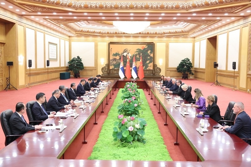 9月4日下午,國家主席習近平在北京人民大會堂會見來華出席紀念中國人民抗日戰(zhàn)爭暨世界反法西斯戰(zhàn)爭勝利80周年活動的塞爾維亞總統(tǒng)武契奇。新華社記者 黃敬文 攝