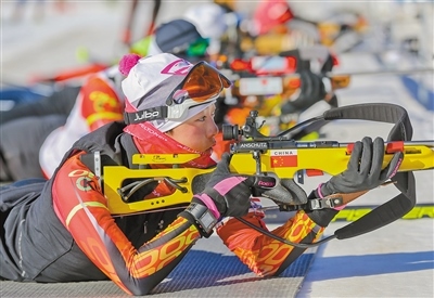 內(nèi)蒙古冬季兩項運動員加緊訓練?! ?/p>