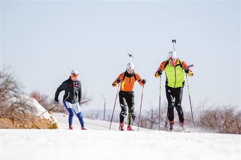 接下來,冰球場工作人員將用噴漆畫線裝置進(jìn)行白漆噴涂,一共噴涂三遍,畫線包括藍(lán)線、紅線、爭球圈、球門區(qū)。另外還要進(jìn)行LOGO鋪設(shè)。上述工序完成后,還要繼續(xù)澆冰增加冰面厚度,冬奧會對冰面要求平均厚度約為4厘米,冬殘奧會冰面平均厚度約為5厘米。