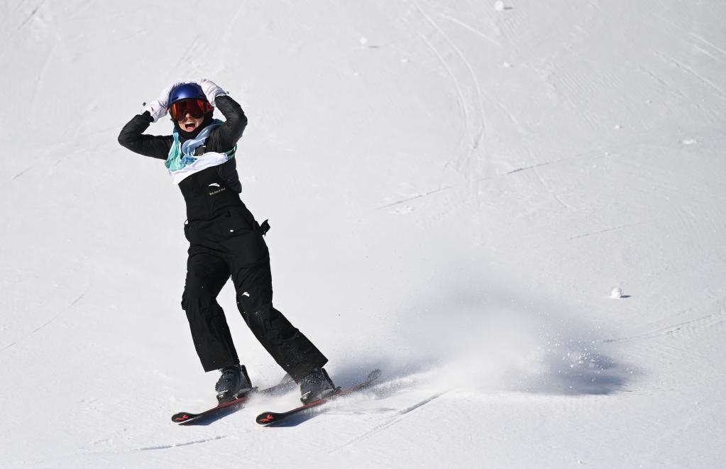 馭雪而馳、躍向藍(lán)天、翻轉(zhuǎn)兩周、轉(zhuǎn)體1620……3秒鐘后,穩(wěn)穩(wěn)落地,雪板激起的雪沫劃破全場緊張的寂靜,中國選手谷愛凌大聲尖叫,雙手抱頭,掩面而泣。2003年出生的她,用從未做出的超高難度動作成功挑戰(zhàn)第三跳,上演超級大逆轉(zhuǎn),在8日舉行的北京冬奧會自由式滑雪女子大跳臺決賽中摘得桂冠?! ?/p>