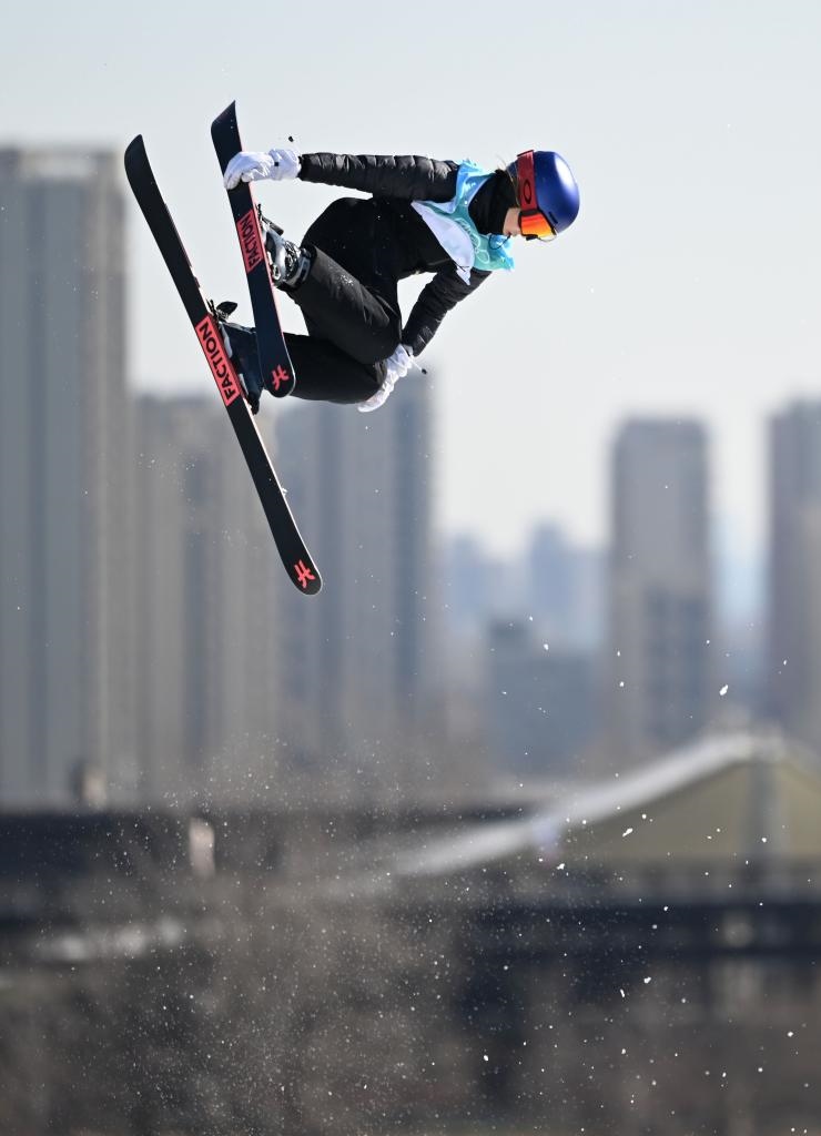 2月8日,中國(guó)選手谷愛凌在北京2022年冬奧會(huì)自由式滑雪女子大跳臺(tái)決賽中。新華社記者李尕?cái)z